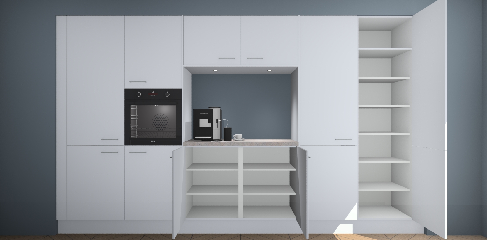 In deze box zijn alle kleuren verzameld van de deuren en werkbladen. Vraag de gratis kleurenbox aan en kijk thuis rustig verder!