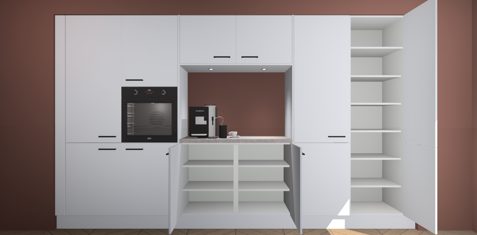 In deze box zijn alle kleuren verzameld van de deuren en werkbladen. Vraag de gratis kleurenbox aan en kijk thuis rustig verder!