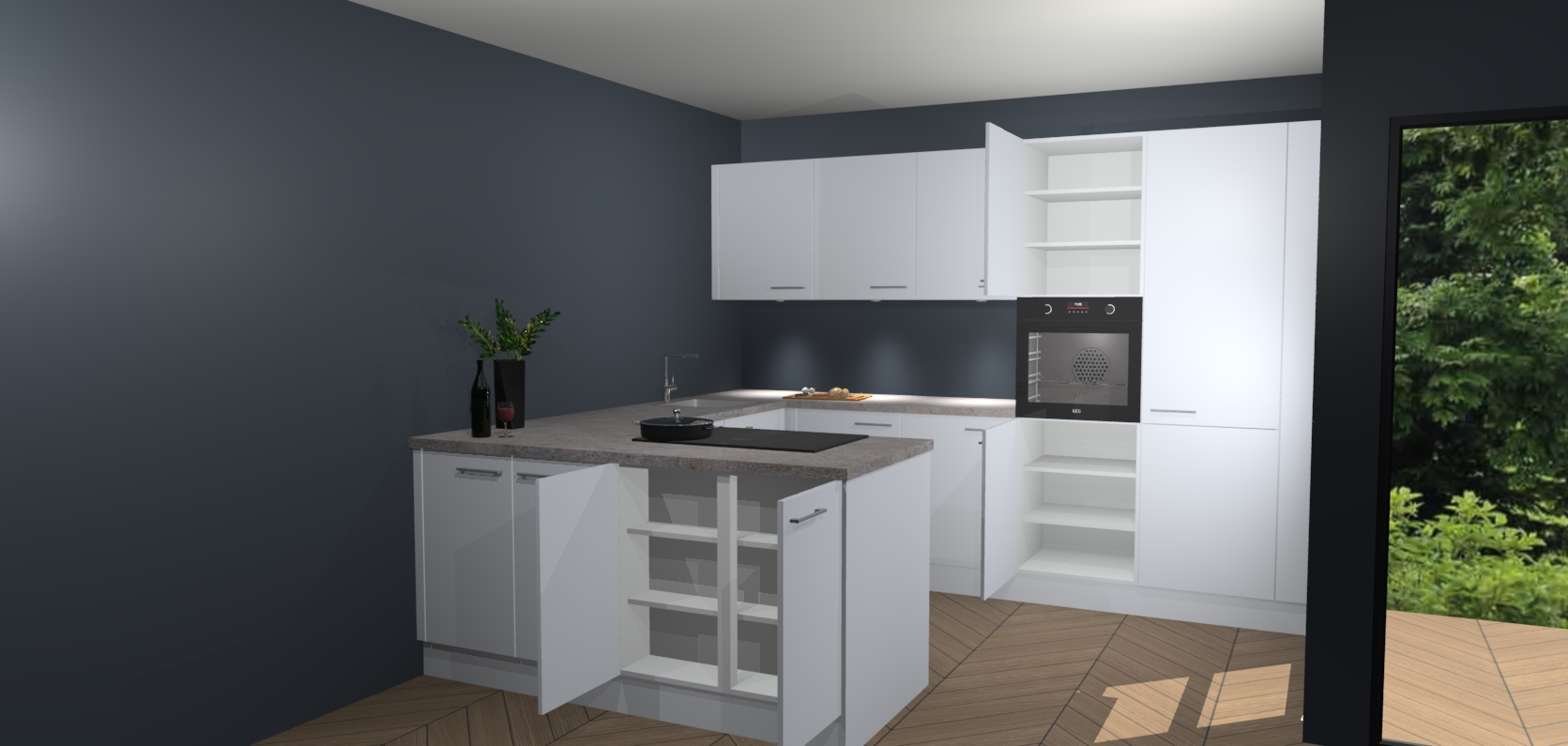 Inclusief plinten, stelpoten en werkblad
