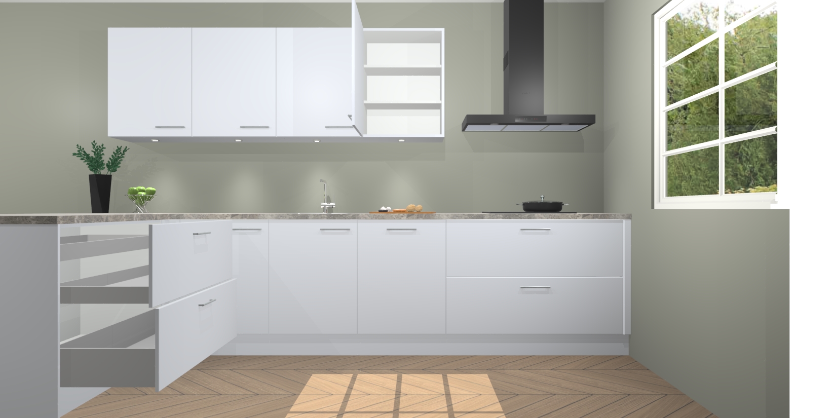 Inclusief plinten, stelpoten en werkblad