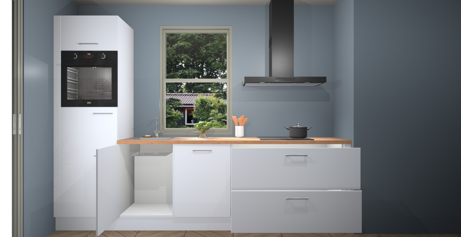 Inclusief plinten, stelpoten en werkblad