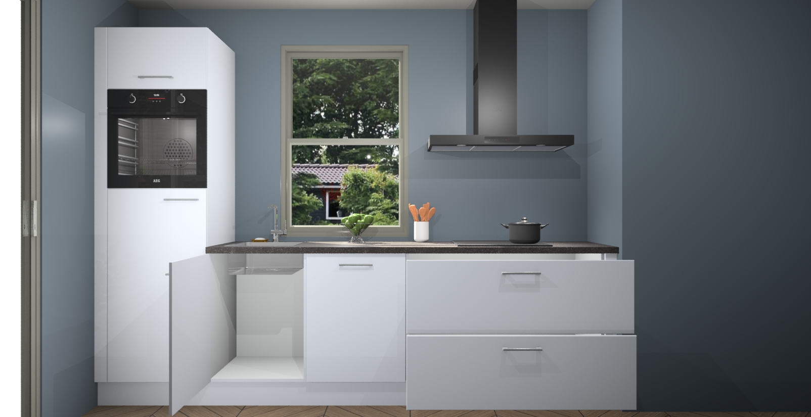 Inclusief plinten, stelpoten en werkblad