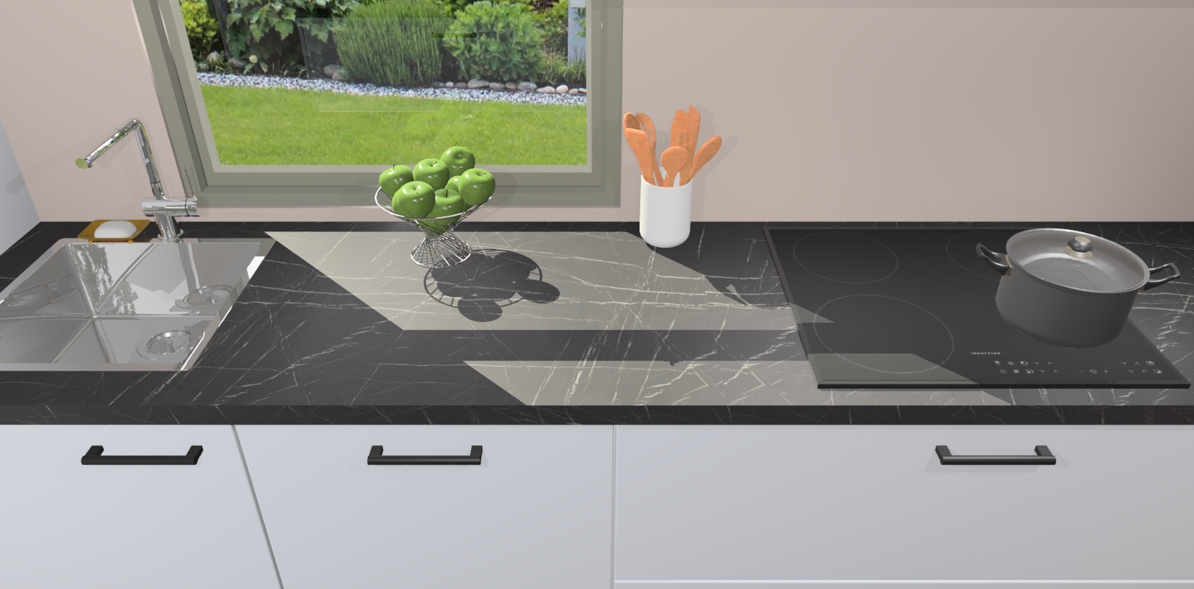 - Bij een hoekwerkblad zijn de hoeken in gevreesd en op maat gemaakt