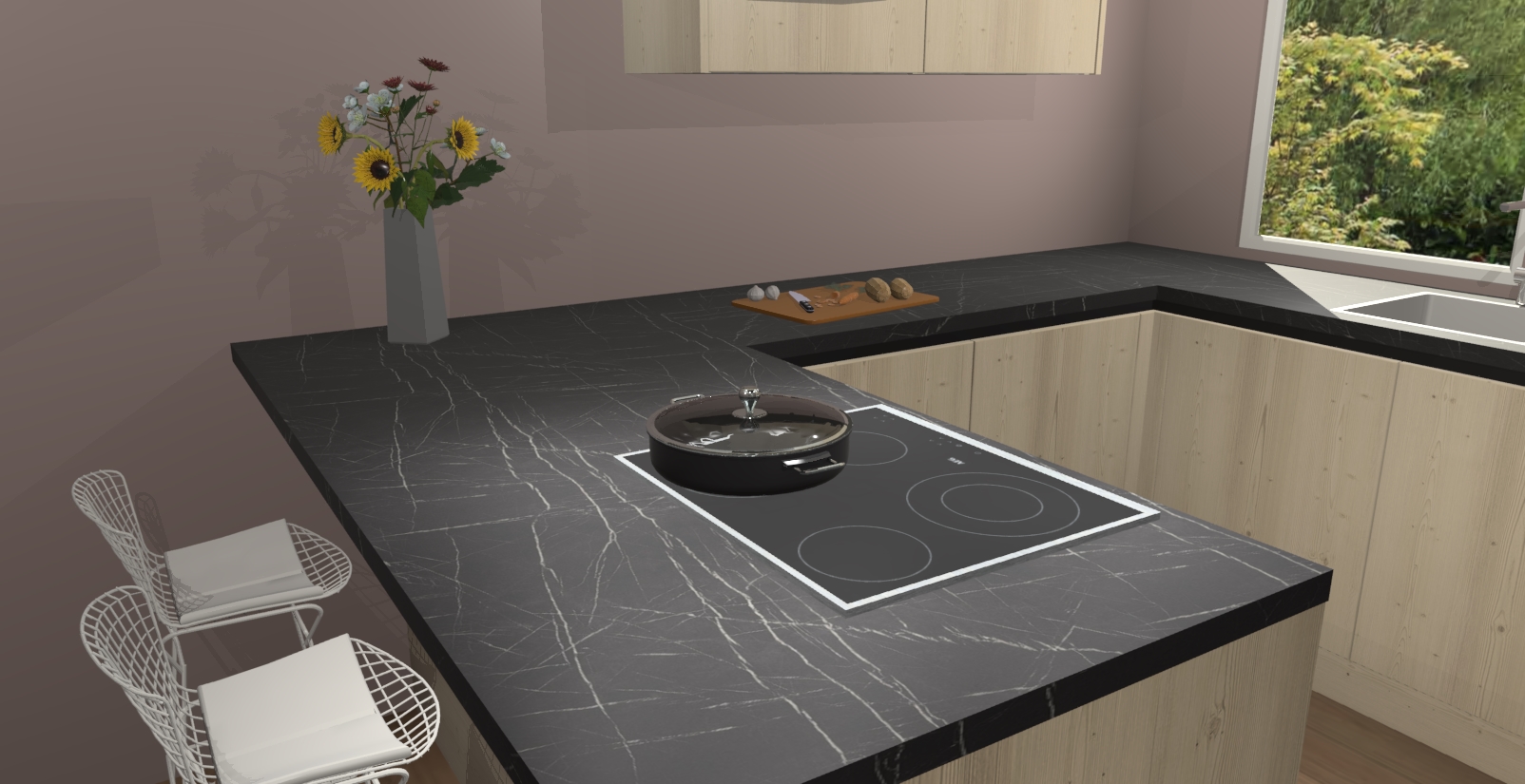 • Bij een hoekwerkblad zijn de hoeken in gevreesd en op maat gemaakt