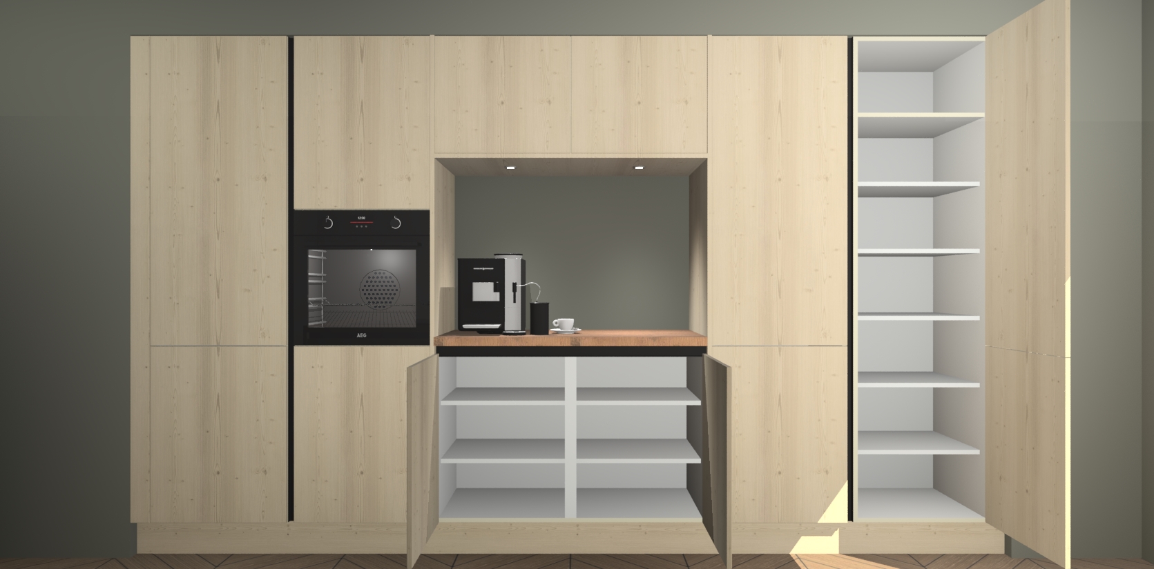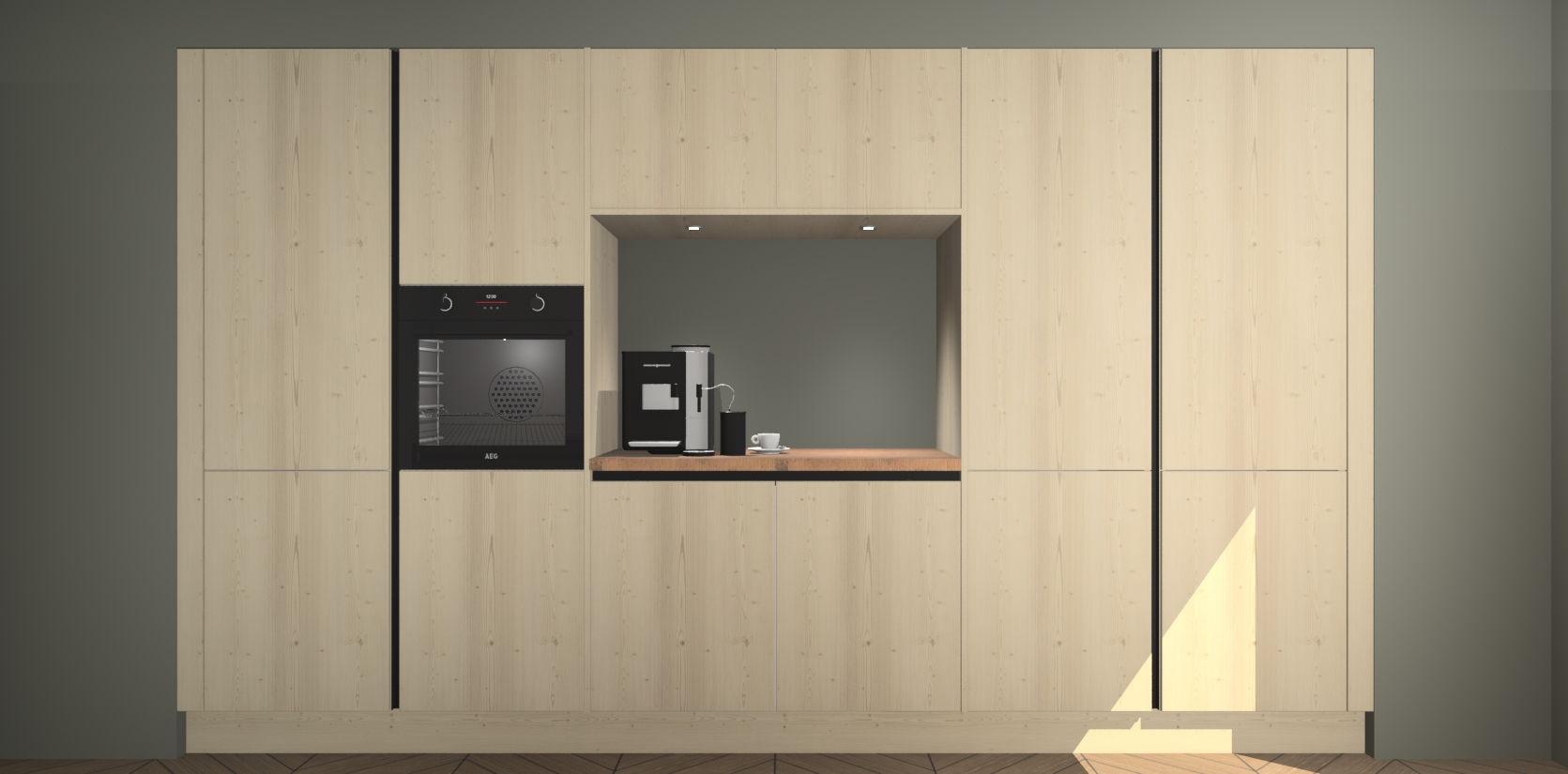 De Vuren greeploze keuken Lodz wordt geleverd met een set van 5 ingebouwde apparaten: Een oven, inductiekookplaat, afzuigkap, vaatwasser en koelkast. Deze kunnen gemakkelijk worden opgewaardeerd naar AEG. Met de gegarandeerde lage prijs en de snelle levering van 7 weken kan u er op rekenen dat de Vuren greeploze keuken Lodz zo snel mogelijk uw huis bereikt!