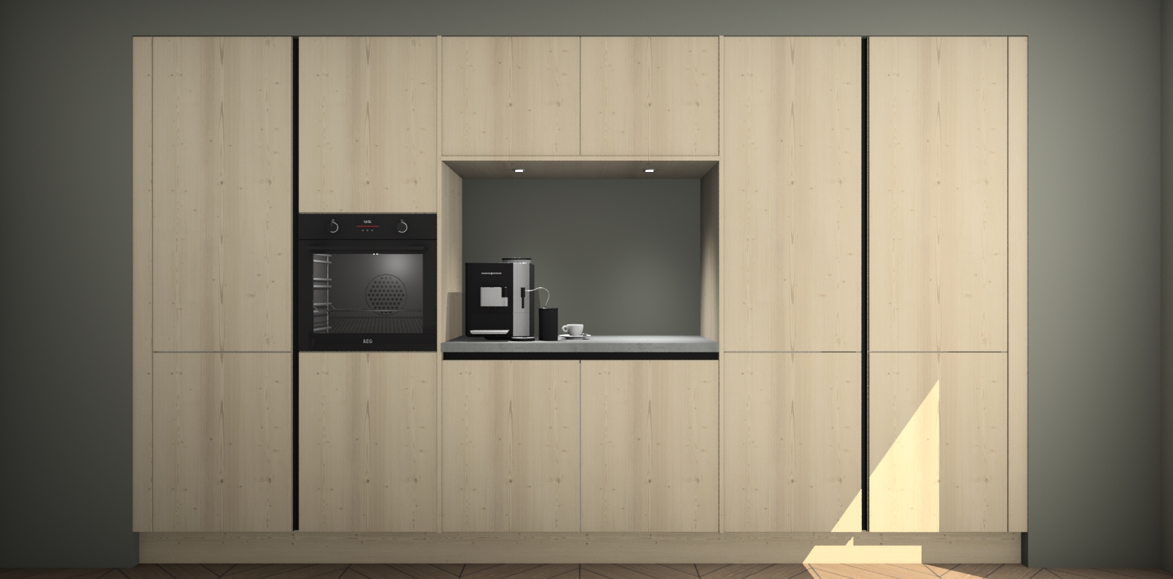 De Vuren greeploze keuken Lodz wordt geleverd met een set van 5 ingebouwde apparaten: Een oven, inductiekookplaat, afzuigkap, vaatwasser en koelkast. Deze kunnen gemakkelijk worden opgewaardeerd naar AEG. Met de gegarandeerde lage prijs en de snelle levering van 7 weken kan u er op rekenen dat de Vuren greeploze keuken Lodz zo snel mogelijk uw huis bereikt!