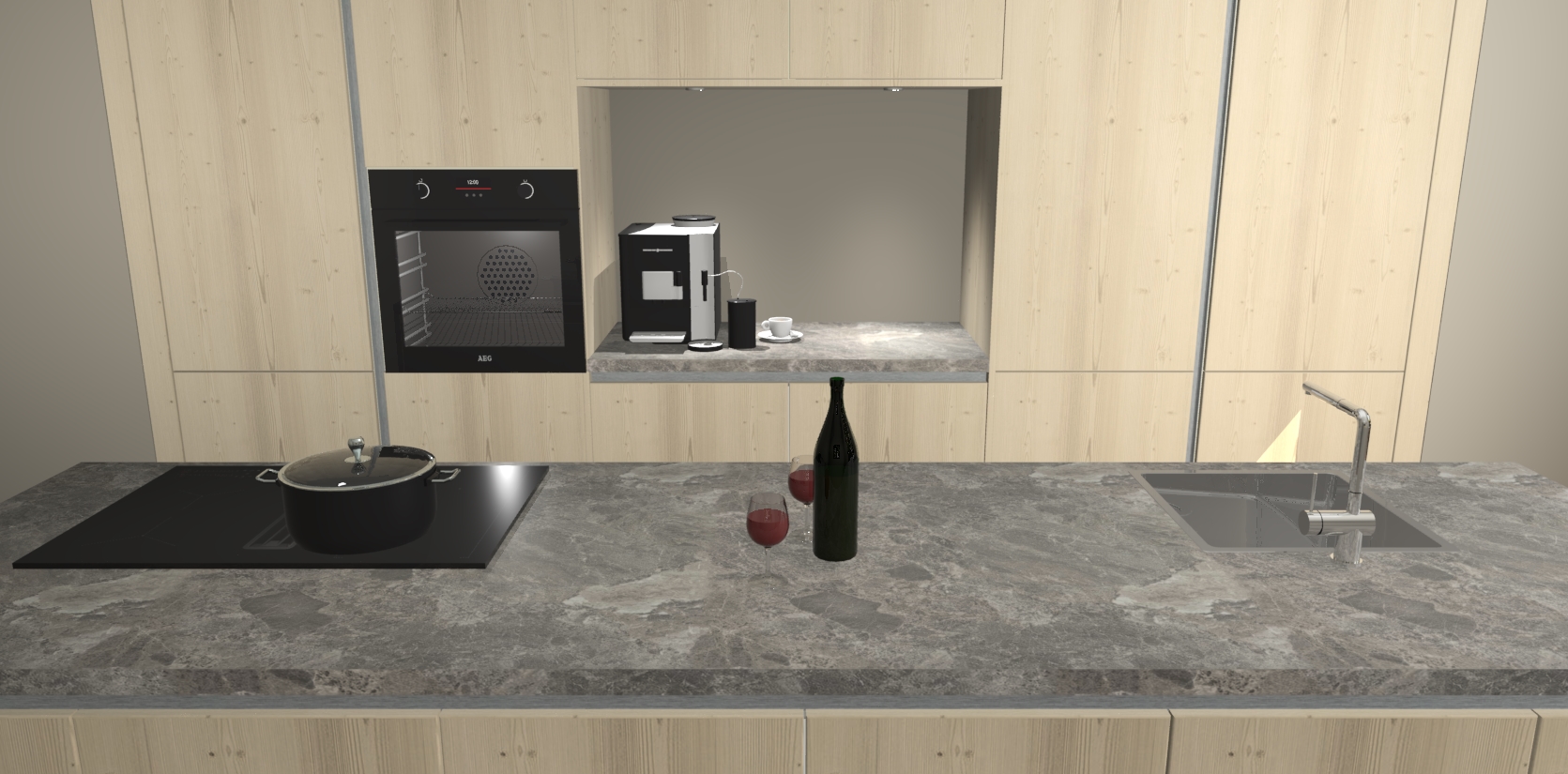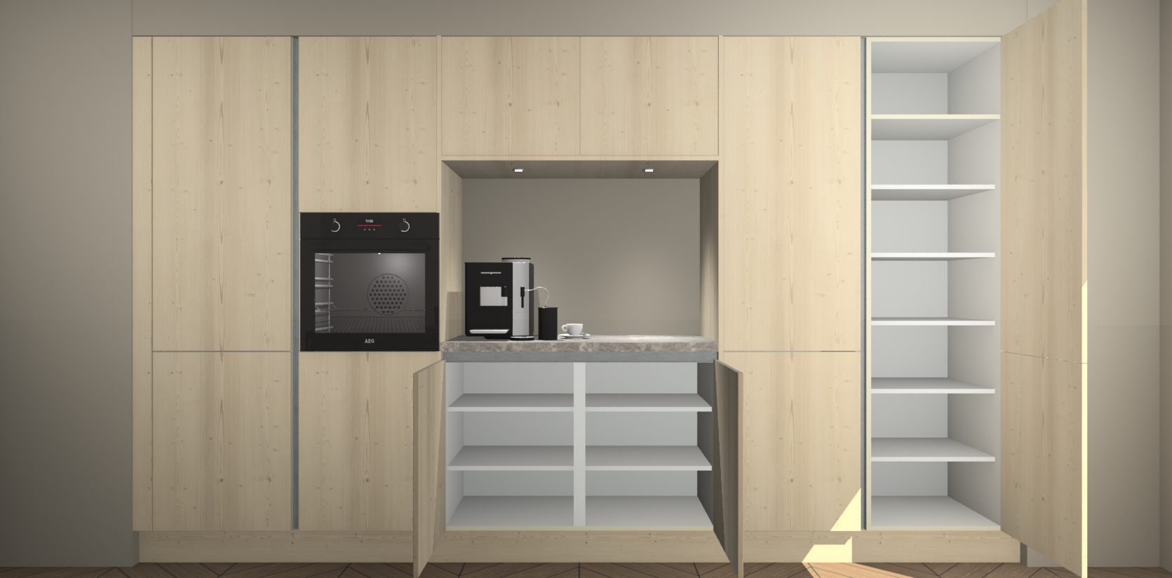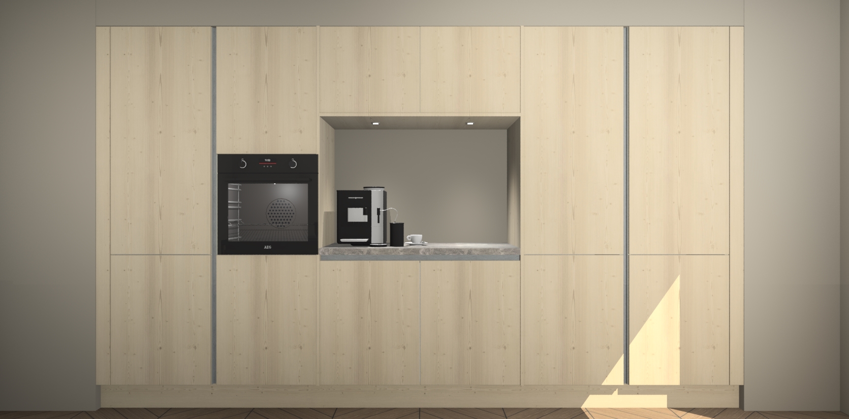 De Vuren greeploze keuken Lodz wordt geleverd met een set van 5 ingebouwde apparaten: Een oven, inductiekookplaat, afzuigkap, vaatwasser en koelkast. Deze kunnen gemakkelijk worden opgewaardeerd naar AEG. Met de gegarandeerde lage prijs en de snelle levering van 7 weken kan u er op rekenen dat de Vuren greeploze keuken Lodz zo snel mogelijk uw huis bereikt!