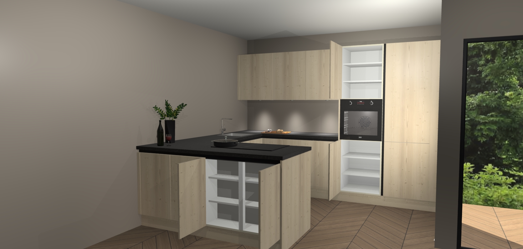 Inclusief plinten, stelpoten en werkblad