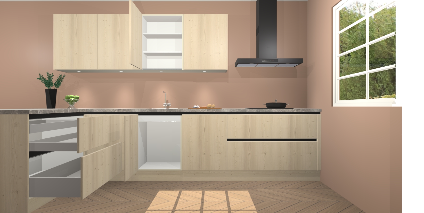 Inclusief plinten, stelpoten en werkblad