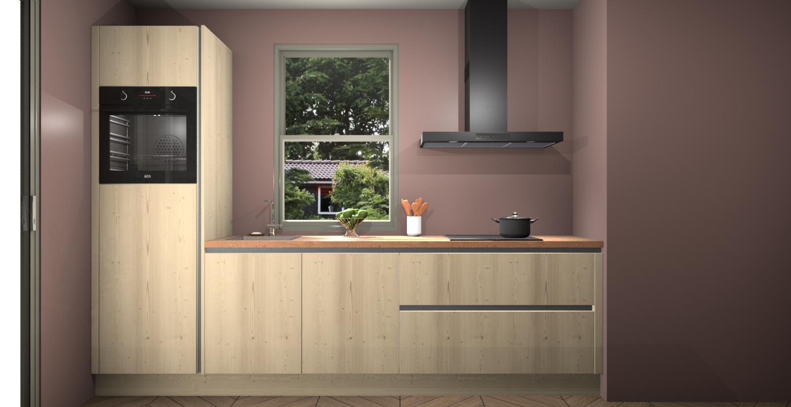 Een stijlvolle en praktische keuken als deze mag gezien worden. Dankzij de prachtige Vuren afwerking wordt de keuken gemakkelijk het middelpunt van uw huis - hij ziet er geweldig uit onder allerlei lichtomstandigheden, van dag tot nacht!