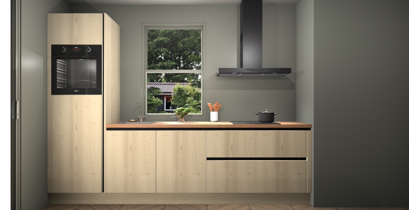 Een stijlvolle en praktische keuken als deze mag gezien worden. Dankzij de prachtige Vuren afwerking wordt de keuken gemakkelijk het middelpunt van uw huis - hij ziet er geweldig uit onder allerlei lichtomstandigheden, van dag tot nacht!