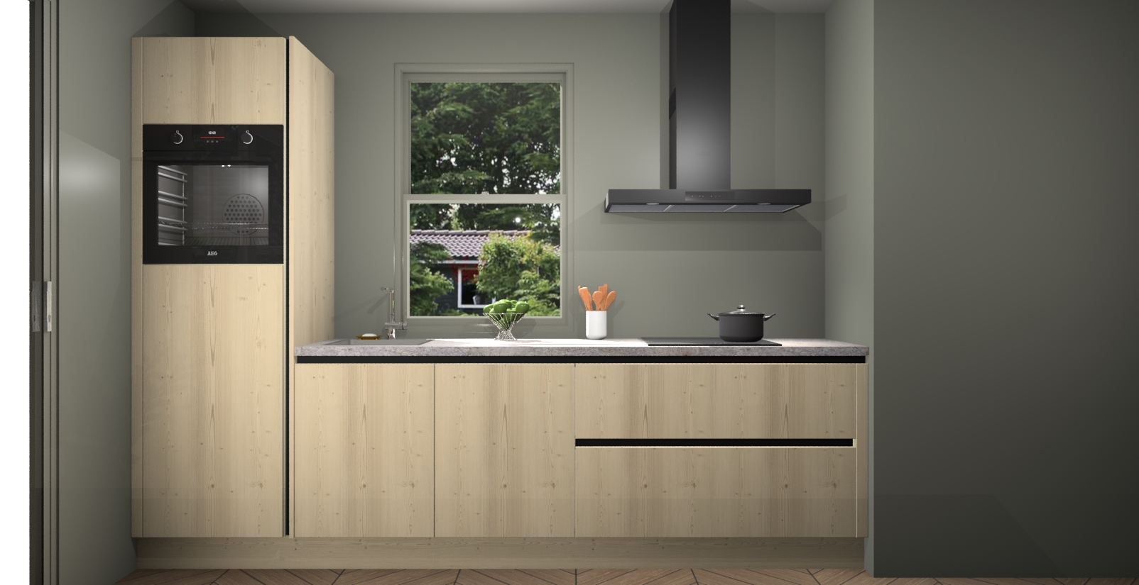 Een stijlvolle en praktische keuken als deze mag gezien worden. Dankzij de prachtige Vuren afwerking wordt de keuken gemakkelijk het middelpunt van uw huis - hij ziet er geweldig uit onder allerlei lichtomstandigheden, van dag tot nacht!
