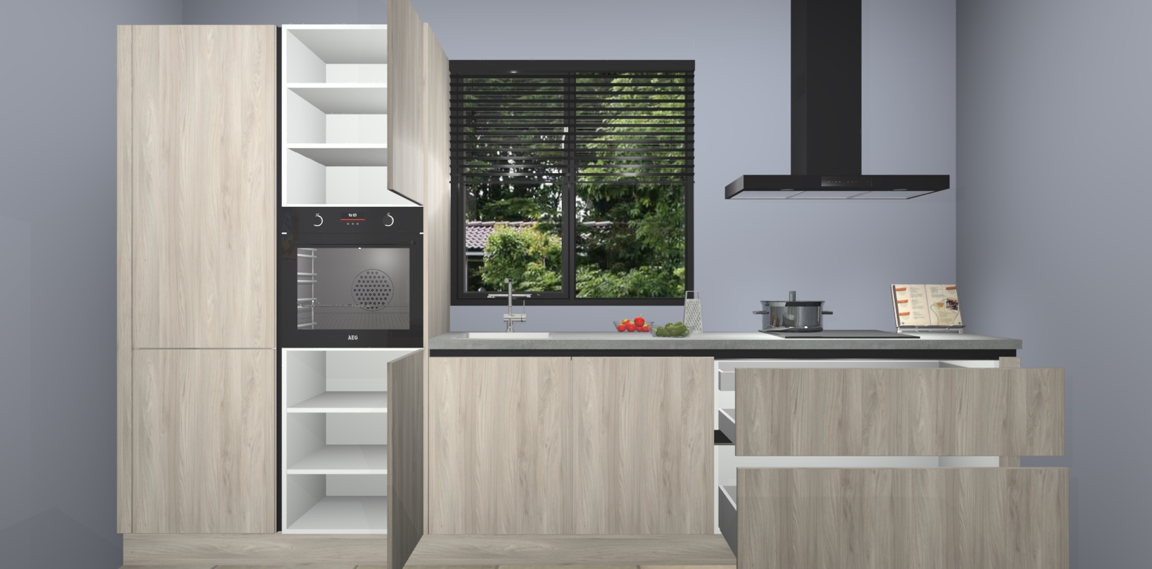 Maak kennis met de vuren keuken Bonaire: de perfecte balans tussen tijdloos en modern. Met voldoende opbergruimte zal deze keuken de afgunst van uw vrienden en familie zijn, terwijl uw leven moeiteloos georganiseerd en rommelvrij blijft.