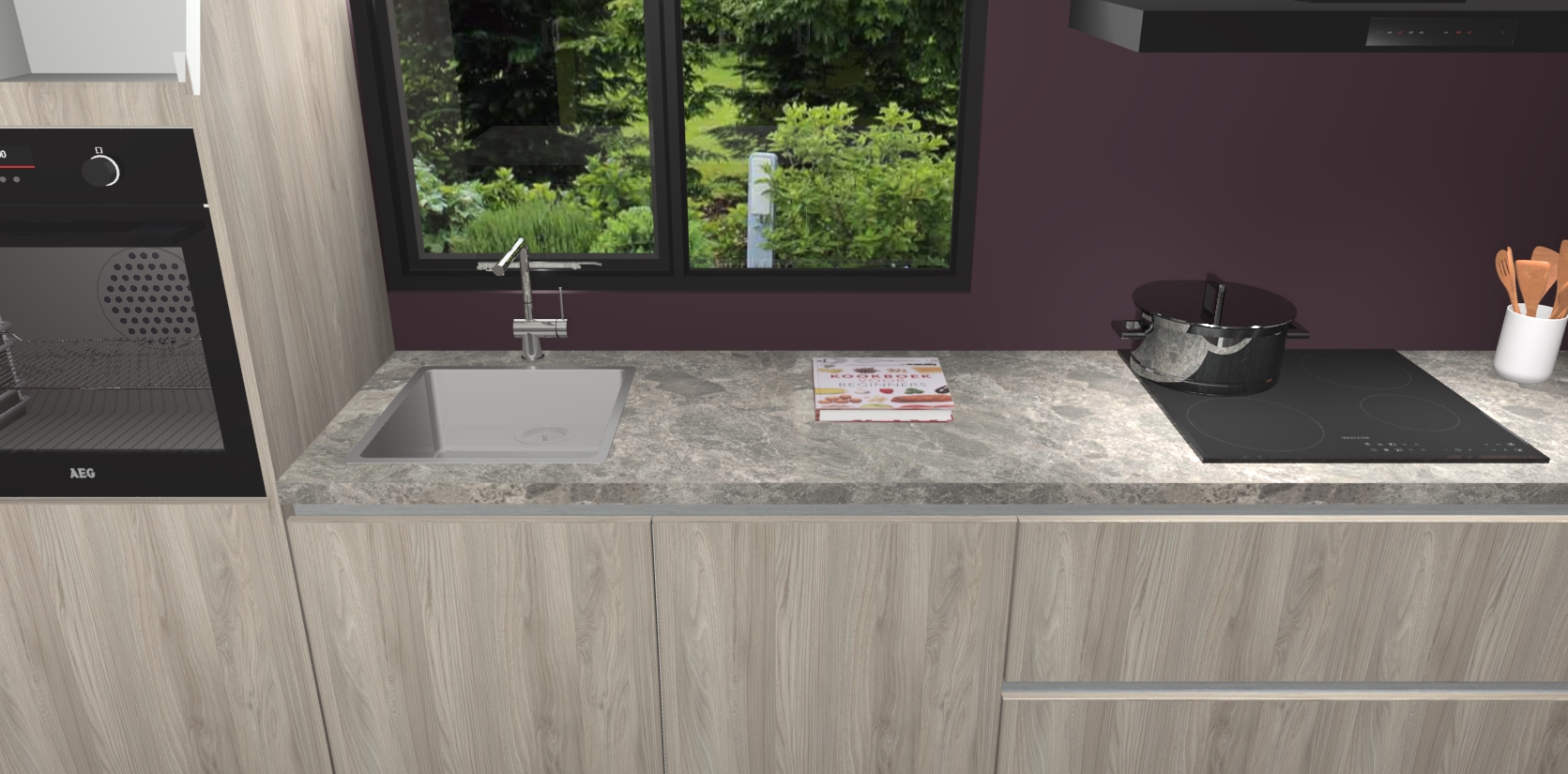 • Uitsparing van kookplaat, spoelbak en kraan dient u zelf te verzorgen.