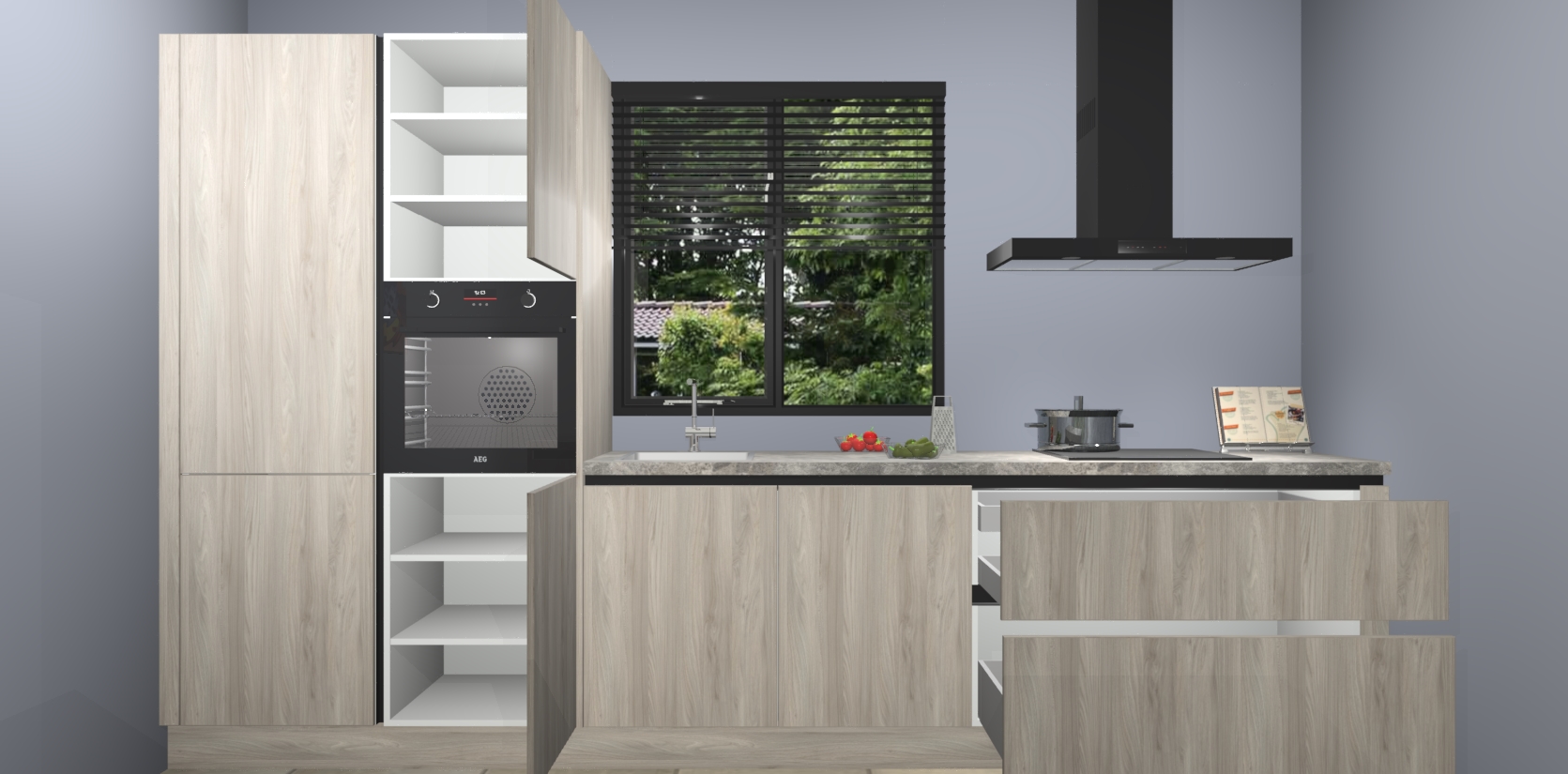 In deze box zijn alle kleuren verzameld van de deuren en werkbladen. Vraag de gratis kleurenbox aan en kijk thuis rustig verder!