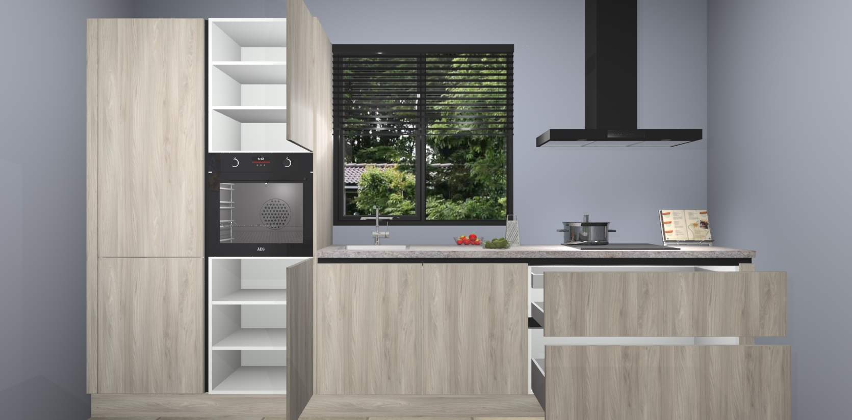 In deze box zijn alle kleuren verzameld van de deuren en werkbladen. Vraag de gratis kleurenbox aan en kijk thuis rustig verder!
