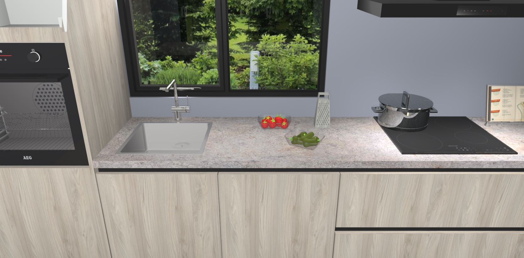 - Uitsparing van kookplaat, spoelbak en kraan dient u zelf te verzorgen.