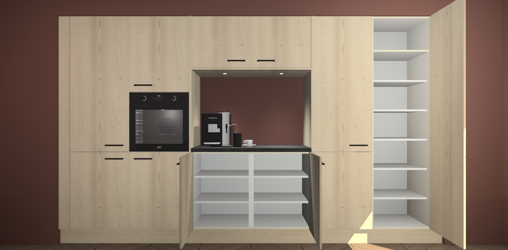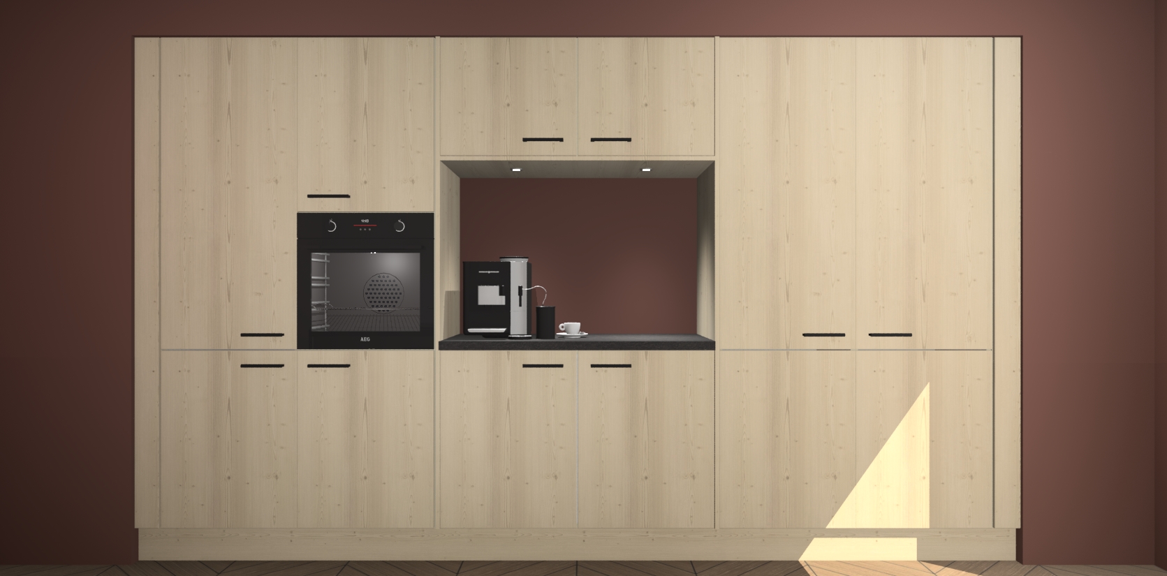 De Vuren keuken Lodz wordt geleverd met een set van 5 ingebouwde apparaten: Een oven, inductiekookplaat, afzuigkap, vaatwasser en koelkast. Deze kunnen gemakkelijk worden opgewaardeerd naar AEG. Met de gegarandeerde lage prijs en de snelle levering van 7 weken kan u er op rekenen dat de Vuren keuken Lodz zo snel mogelijk uw huis bereikt!