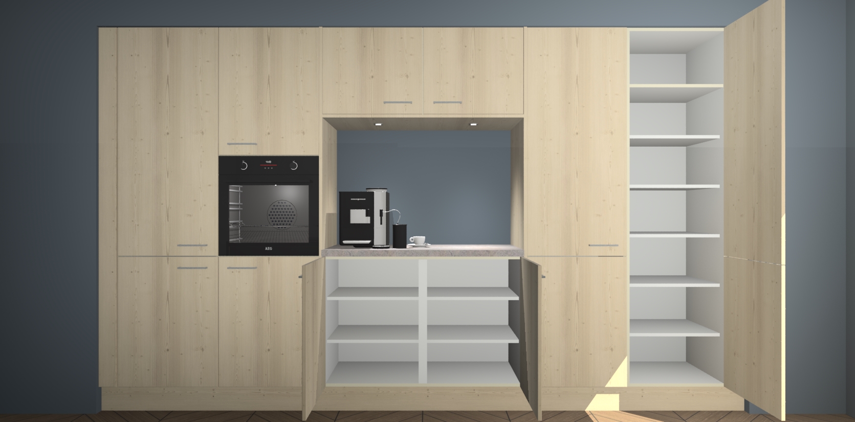 De Vuren keuken Lodz wordt geleverd met een set van 5 ingebouwde apparaten: Een oven, inductiekookplaat, afzuigkap, vaatwasser en koelkast. Deze kunnen gemakkelijk worden opgewaardeerd naar AEG. Met de gegarandeerde lage prijs en de snelle levering van 7 weken kan u er op rekenen dat de Vuren keuken Lodz zo snel mogelijk uw huis bereikt!
