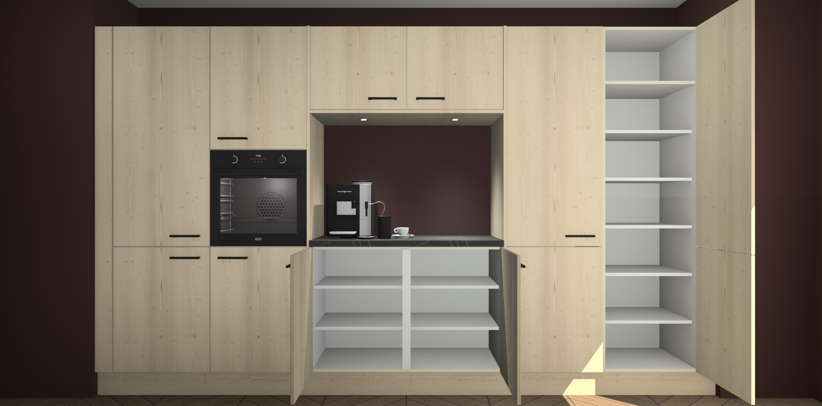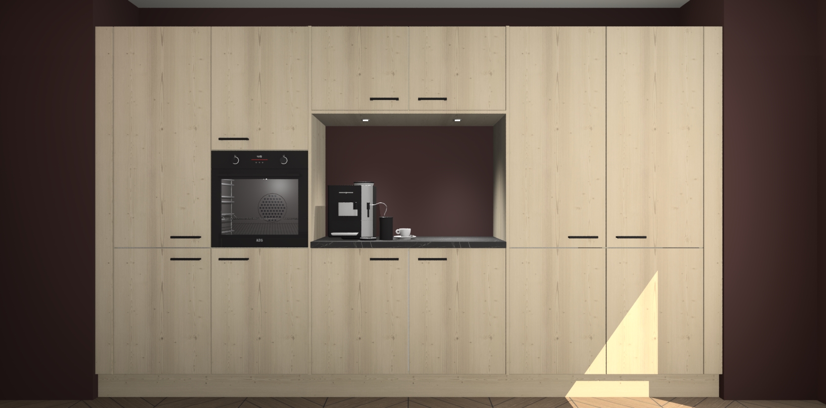 De Vuren keuken Lodz wordt geleverd met een set van 5 ingebouwde apparaten: Een oven, inductiekookplaat, afzuigkap, vaatwasser en koelkast. Deze kunnen gemakkelijk worden opgewaardeerd naar AEG. Met de gegarandeerde lage prijs en de snelle levering van 7 weken kan u er op rekenen dat de Vuren keuken Lodz zo snel mogelijk uw huis bereikt!