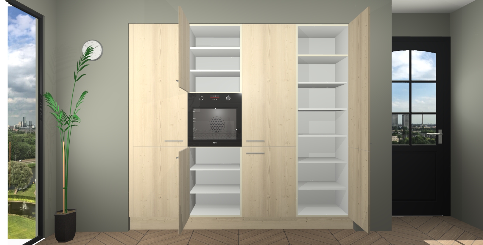 Dankzij de vele opbergruimte wordt praktisch elke centimeter van uw keuken optimaal benut, wat de ruimte een opgeruimde en sfeervolle uitstraling geeft. Bovendien zijn we er trots op dat we een snelle levering van 7 weken en een vaste lage prijs kunnen bieden, zodat u deze prachtige keuken in een mum van tijd in huis hebt!