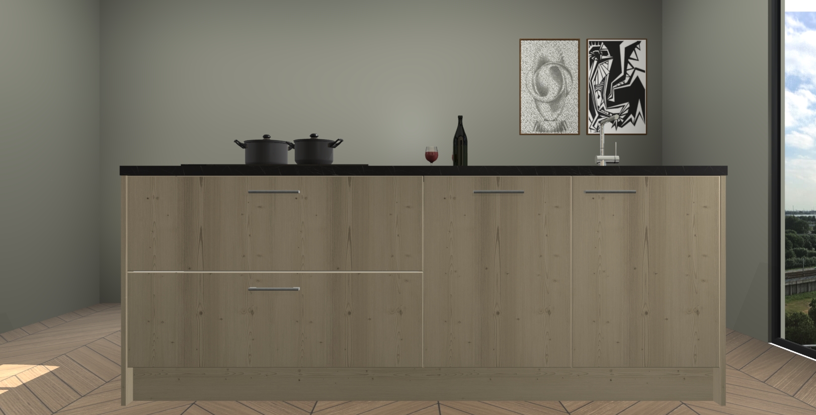Breng luxe in uw keuken met de Vuren Rusiec Keuken! Dit prachtige kookeiland straalt elegantie uit en laat elke ruimte er modern en verfijnd uitzien. De strakke