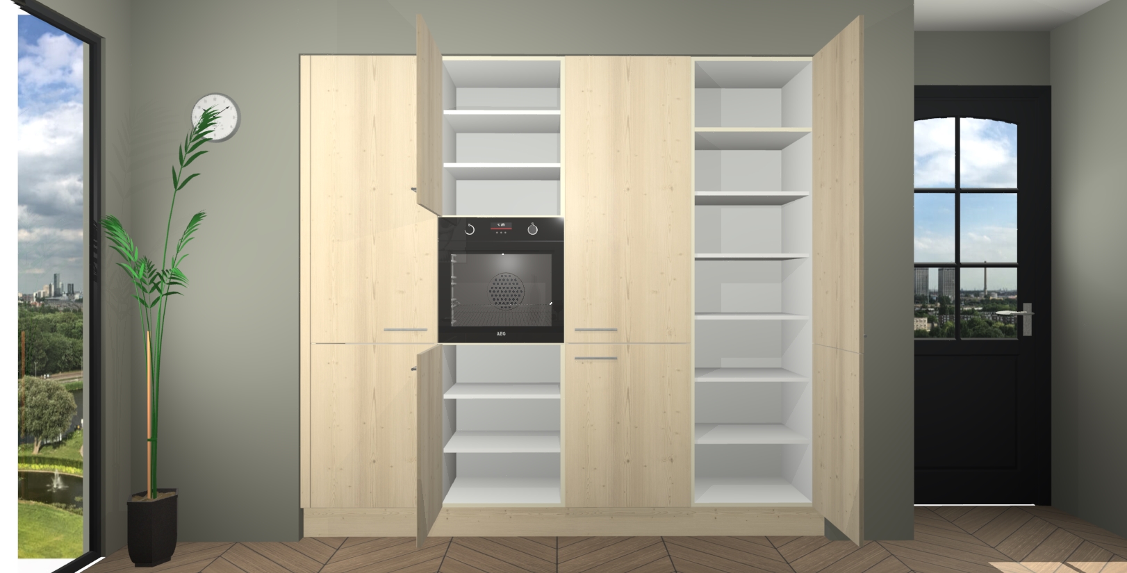 Dankzij de vele opbergruimte wordt praktisch elke centimeter van uw keuken optimaal benut, wat de ruimte een opgeruimde en sfeervolle uitstraling geeft. Bovendien zijn we er trots op dat we een snelle levering van 7 weken en een vaste lage prijs kunnen bieden, zodat u deze prachtige keuken in een mum van tijd in huis hebt!