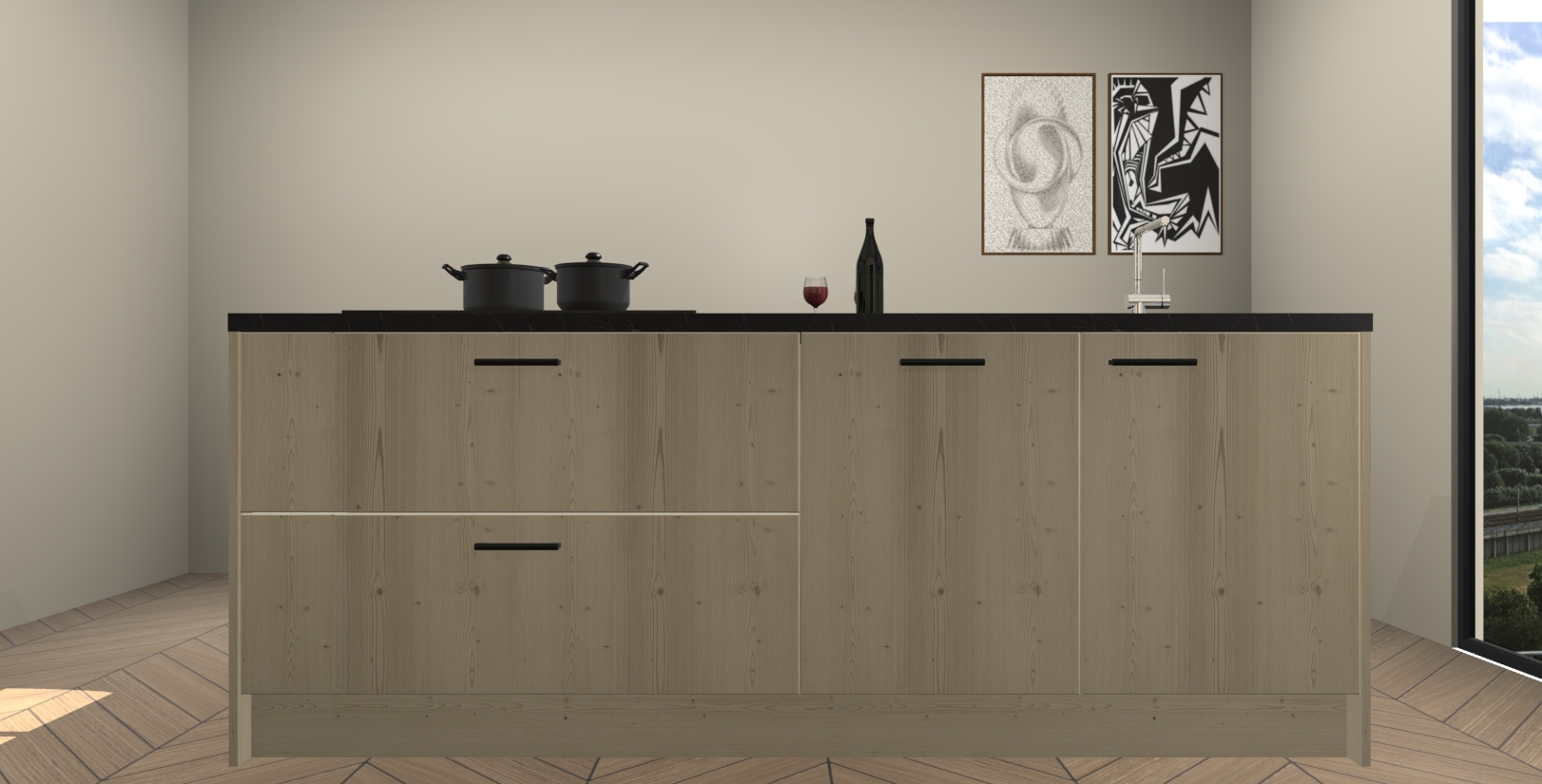 Inclusief plinten, stelpoten en werkblad