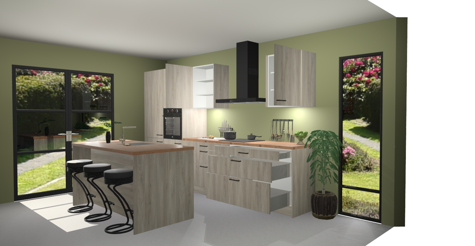 Inclusief plinten, stelpoten en werkblad