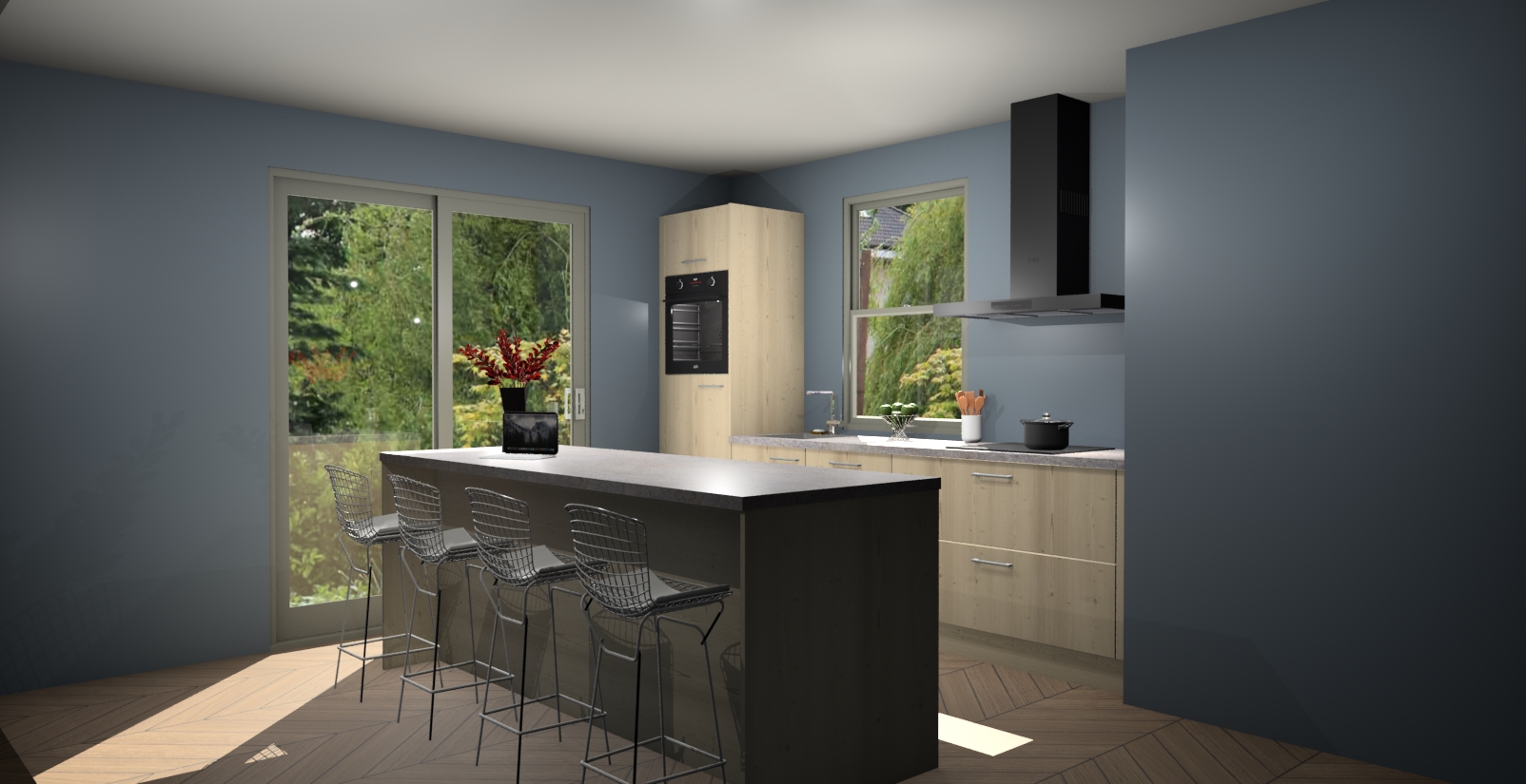 Een stijlvolle en praktische keuken als deze mag gezien worden. Dankzij de prachtige Vuren afwerking wordt de keuken gemakkelijk het middelpunt van uw huis - hij ziet er geweldig uit onder allerlei lichtomstandigheden, van dag tot nacht!