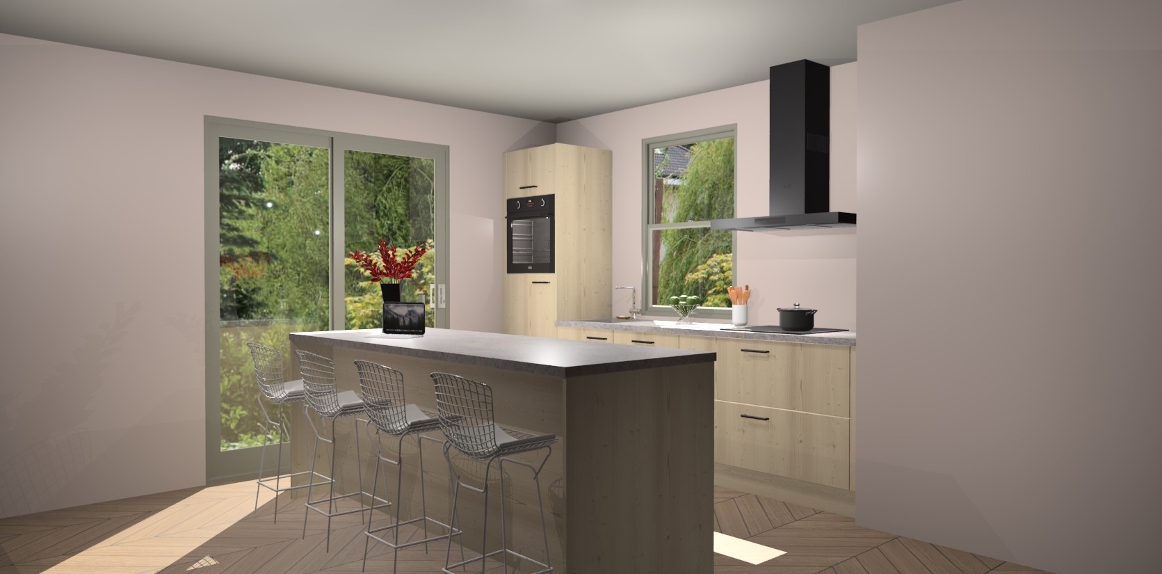Een stijlvolle en praktische keuken als deze mag gezien worden. Dankzij de prachtige Vuren afwerking wordt de keuken gemakkelijk het middelpunt van uw huis - hij ziet er geweldig uit onder allerlei lichtomstandigheden, van dag tot nacht!