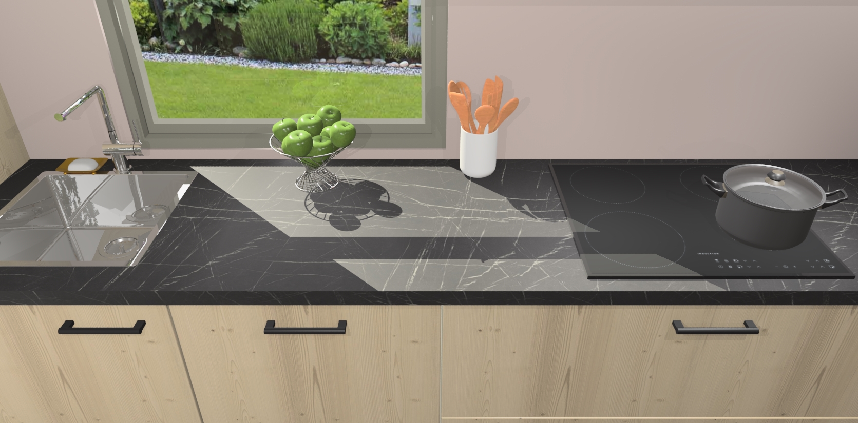 - Bij een hoekwerkblad zijn de hoeken in gevreesd en op maat gemaakt