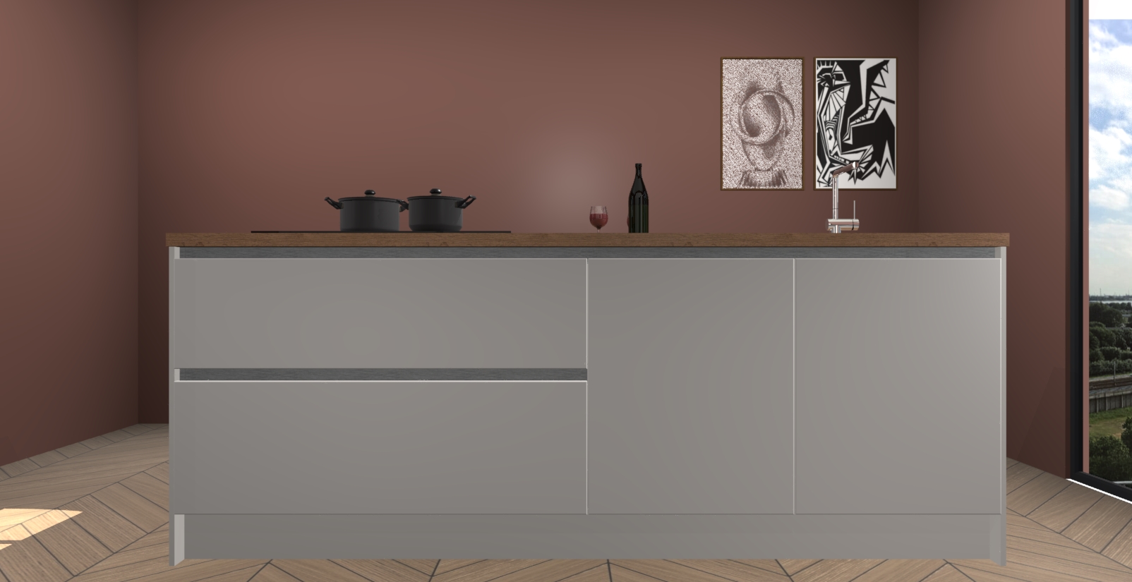 Inclusief plinten, stelpoten en werkblad
