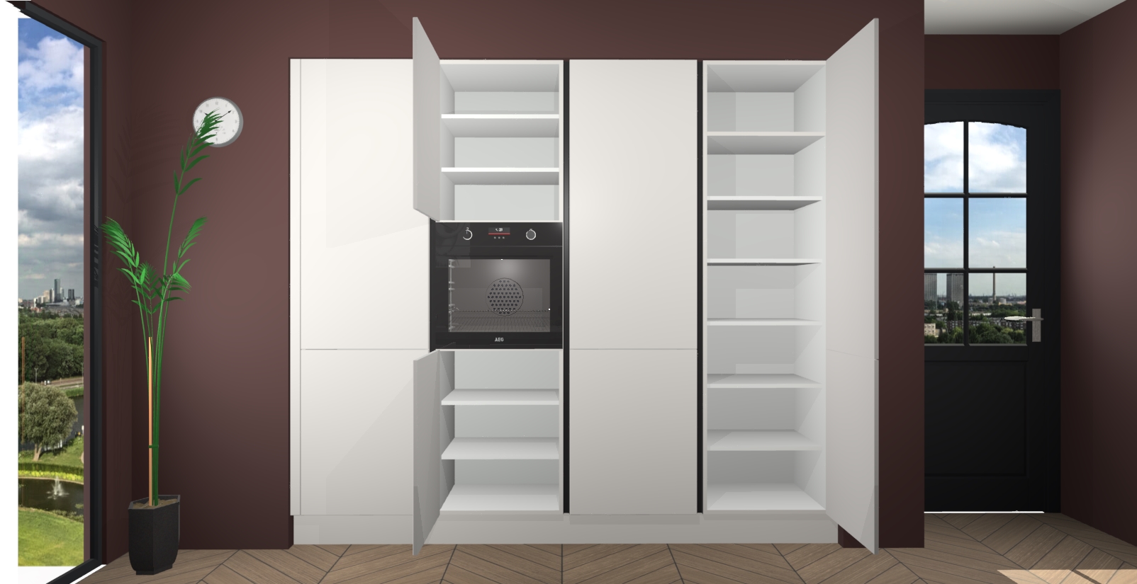 Dankzij de vele opbergruimte wordt praktisch elke centimeter van uw keuken optimaal benut, wat de ruimte een opgeruimde en sfeervolle uitstraling geeft. Bovendien zijn we er trots op dat we een snelle levering van 7 weken en een vaste lage prijs kunnen bieden, zodat u deze prachtige keuken in een mum van tijd in huis hebt!