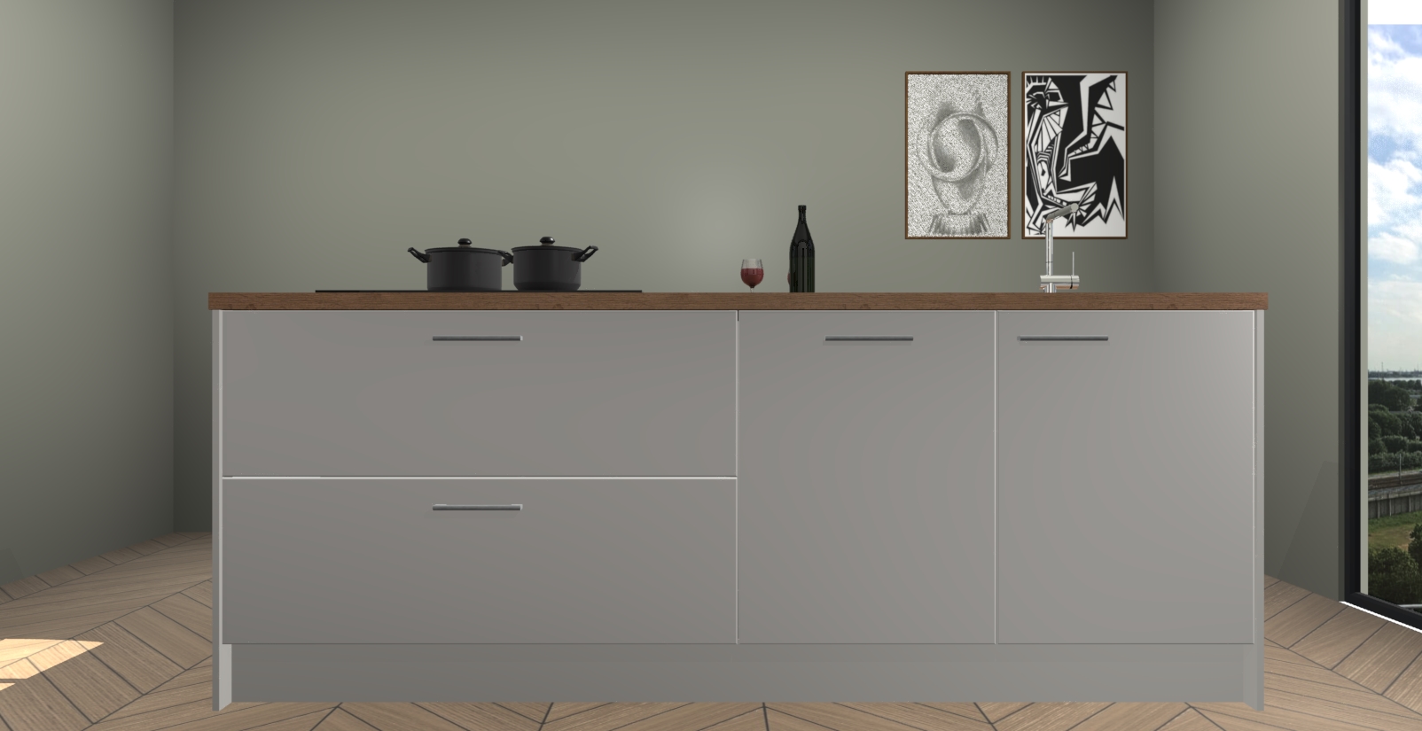 Inclusief plinten, stelpoten en werkblad