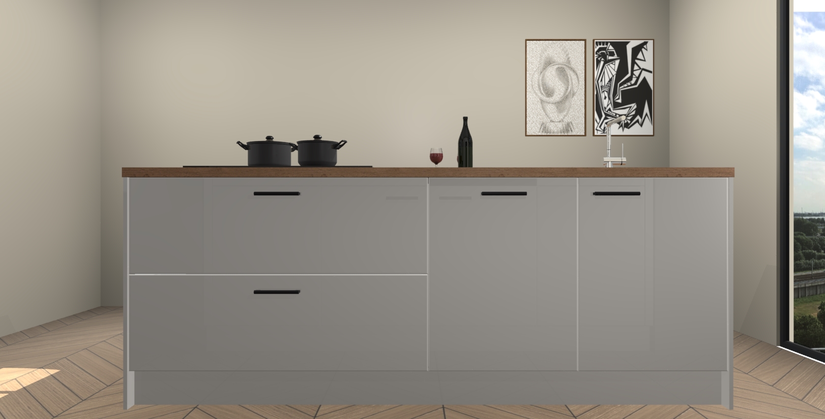 Breng luxe in uw keuken met de zijdegrijs Rusiec Keuken! Dit prachtige kookeiland straalt elegantie uit en laat elke ruimte er modern en verfijnd uitzien. De strakke zijdegrijs kleur geeft uw keuken een gevoel van sfeer en verfijning dat u bij andere stijlen niet krijgt.