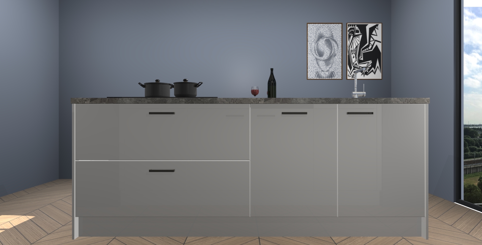 Breng luxe in uw keuken met de zijdegrijs Rusiec Keuken! Dit prachtige kookeiland straalt elegantie uit en laat elke ruimte er modern en verfijnd uitzien. De strakke zijdegrijs kleur geeft uw keuken een gevoel van sfeer en verfijning dat u bij andere stijlen niet krijgt.