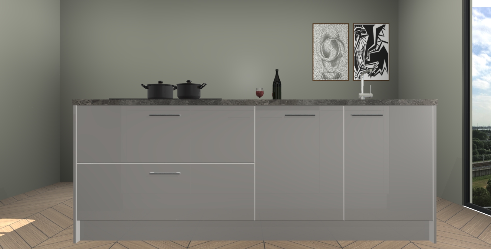 Breng luxe in uw keuken met de zijdegrijs Rusiec Keuken! Dit prachtige kookeiland straalt elegantie uit en laat elke ruimte er modern en verfijnd uitzien. De strakke zijdegrijs kleur geeft uw keuken een gevoel van sfeer en verfijning dat u bij andere stijlen niet krijgt.