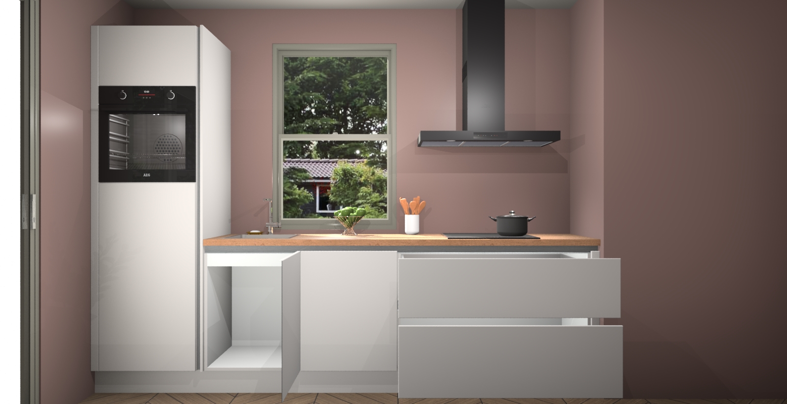 Inclusief plinten, stelpoten en werkblad