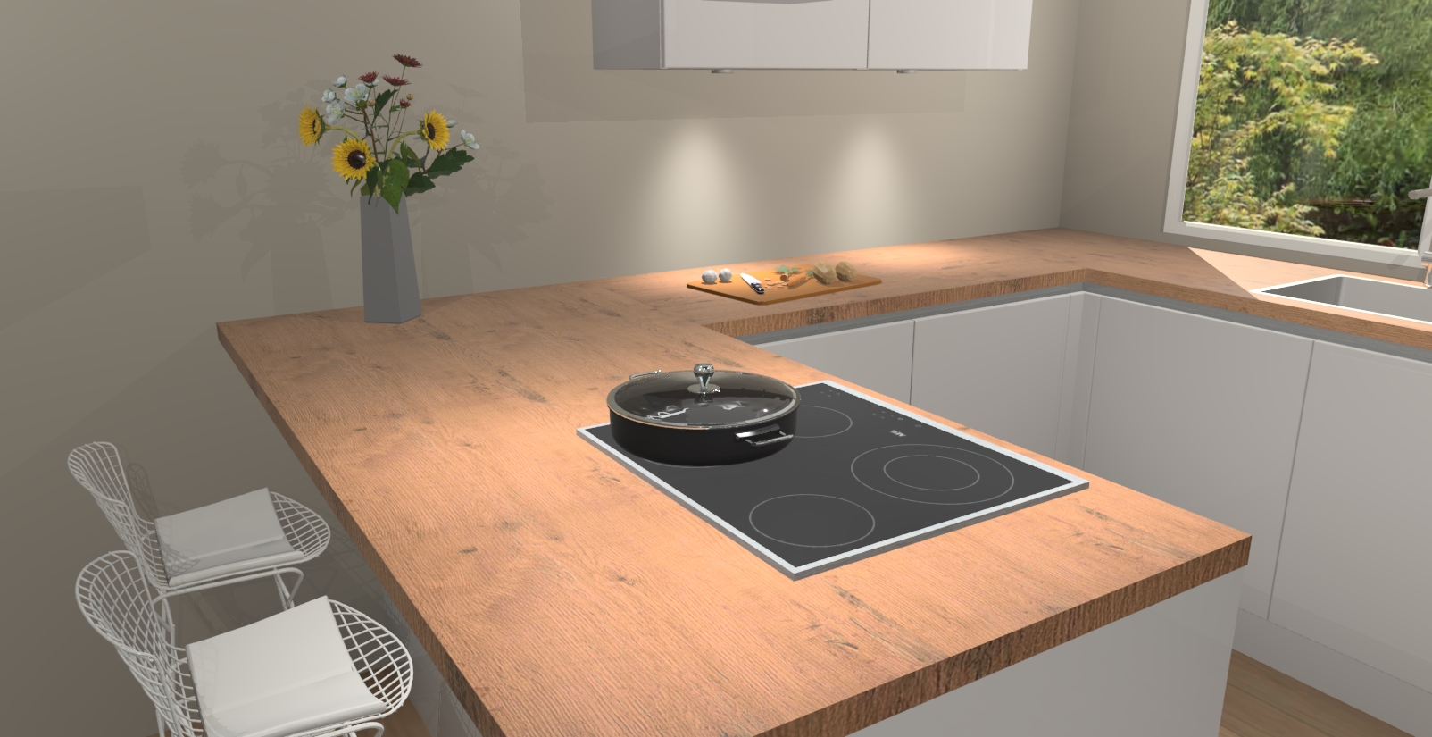 • Bij een hoekwerkblad zijn de hoeken in gevreesd en op maat gemaakt