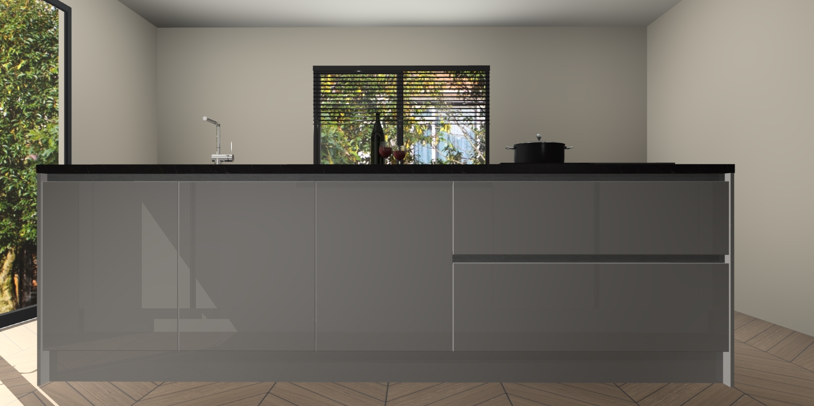 Sfeervol luxe met de zijdegrijze hoogglans greeploze keuken Lodz! Reken op een moderne look die met zijn schitterende zijdegrijze kleur en het prachtige keukeneiland echt zal schitteren in uw keuken. Met veel verschillende berging opties zult u alles kunnen opbergen wat u nodig heeft in deze hoopvolle ruimte, waaronder ook soft-close vergrendeling.