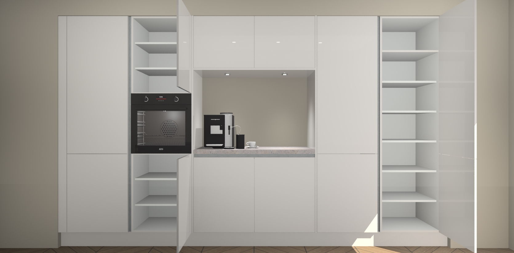 De zijdegrijze hoogglans greeploze keuken Lodz wordt geleverd met een set van 5 ingebouwde apparaten: Een oven, inductiekookplaat, afzuigkap, vaatwasser en koelkast. Deze kunnen gemakkelijk worden opgewaardeerd naar AEG. Met de gegarandeerde lage prijs en de snelle levering van 7 weken kan u er op rekenen dat de zijdegrijze hoogglans greeploze keuken Lodz zo snel mogelijk uw huis bereikt!