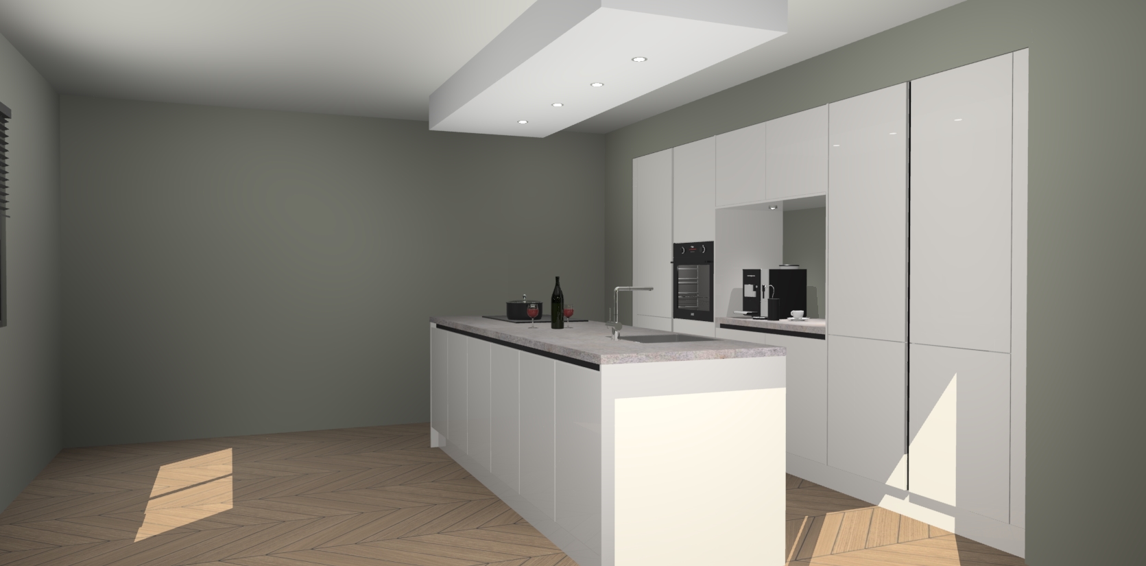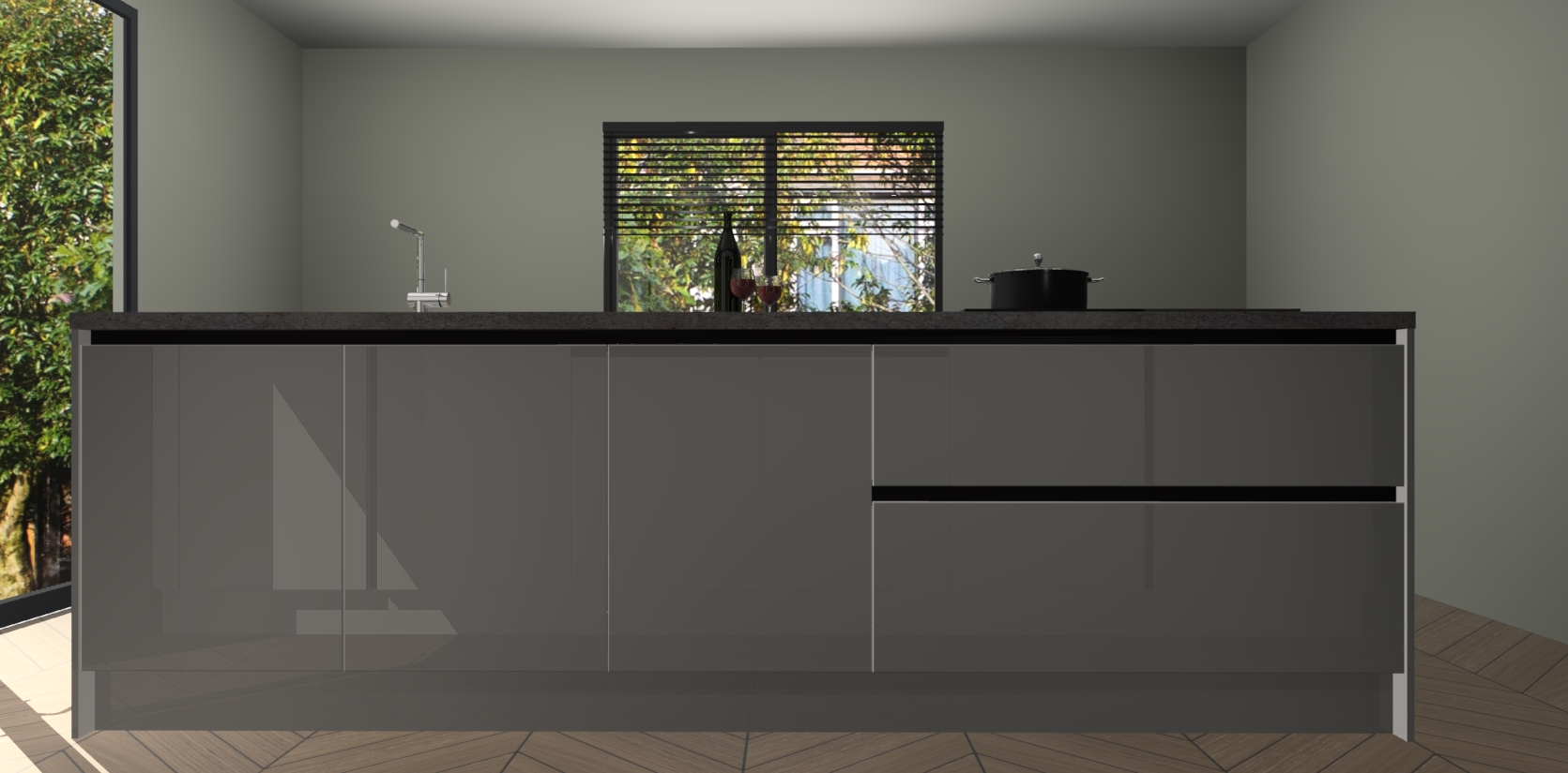 Sfeervol luxe met de zijdegrijze hoogglans greeploze keuken Lodz! Reken op een moderne look die met zijn schitterende zijdegrijze kleur en het prachtige keukeneiland echt zal schitteren in uw keuken. Met veel verschillende berging opties zult u alles kunnen opbergen wat u nodig heeft in deze hoopvolle ruimte, waaronder ook soft-close vergrendeling.