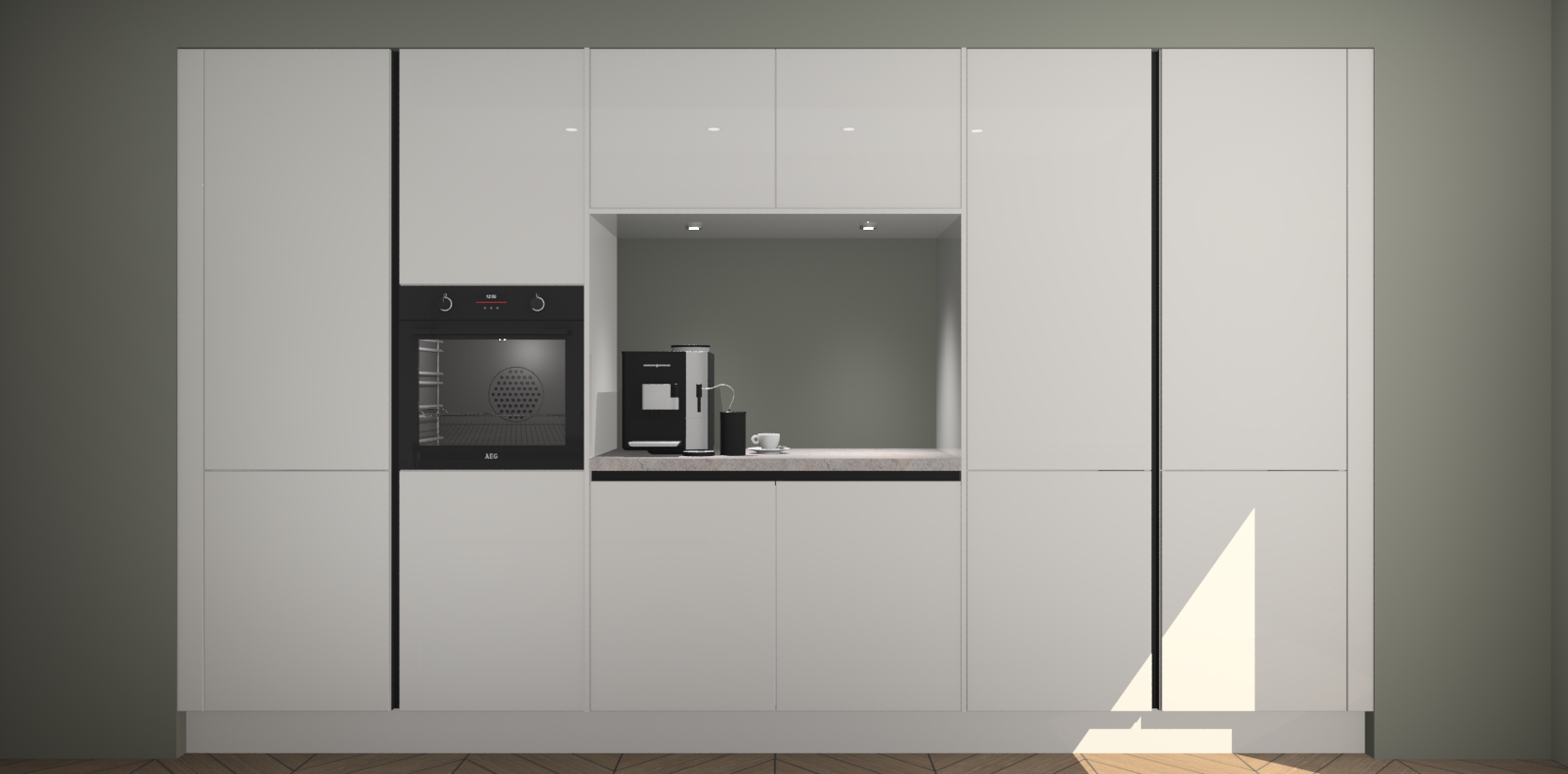 De zijdegrijze hoogglans greeploze keuken Lodz wordt geleverd met een set van 5 ingebouwde apparaten: Een oven, inductiekookplaat, afzuigkap, vaatwasser en koelkast. Deze kunnen gemakkelijk worden opgewaardeerd naar AEG. Met de gegarandeerde lage prijs en de snelle levering van 7 weken kan u er op rekenen dat de zijdegrijze hoogglans greeploze keuken Lodz zo snel mogelijk uw huis bereikt!