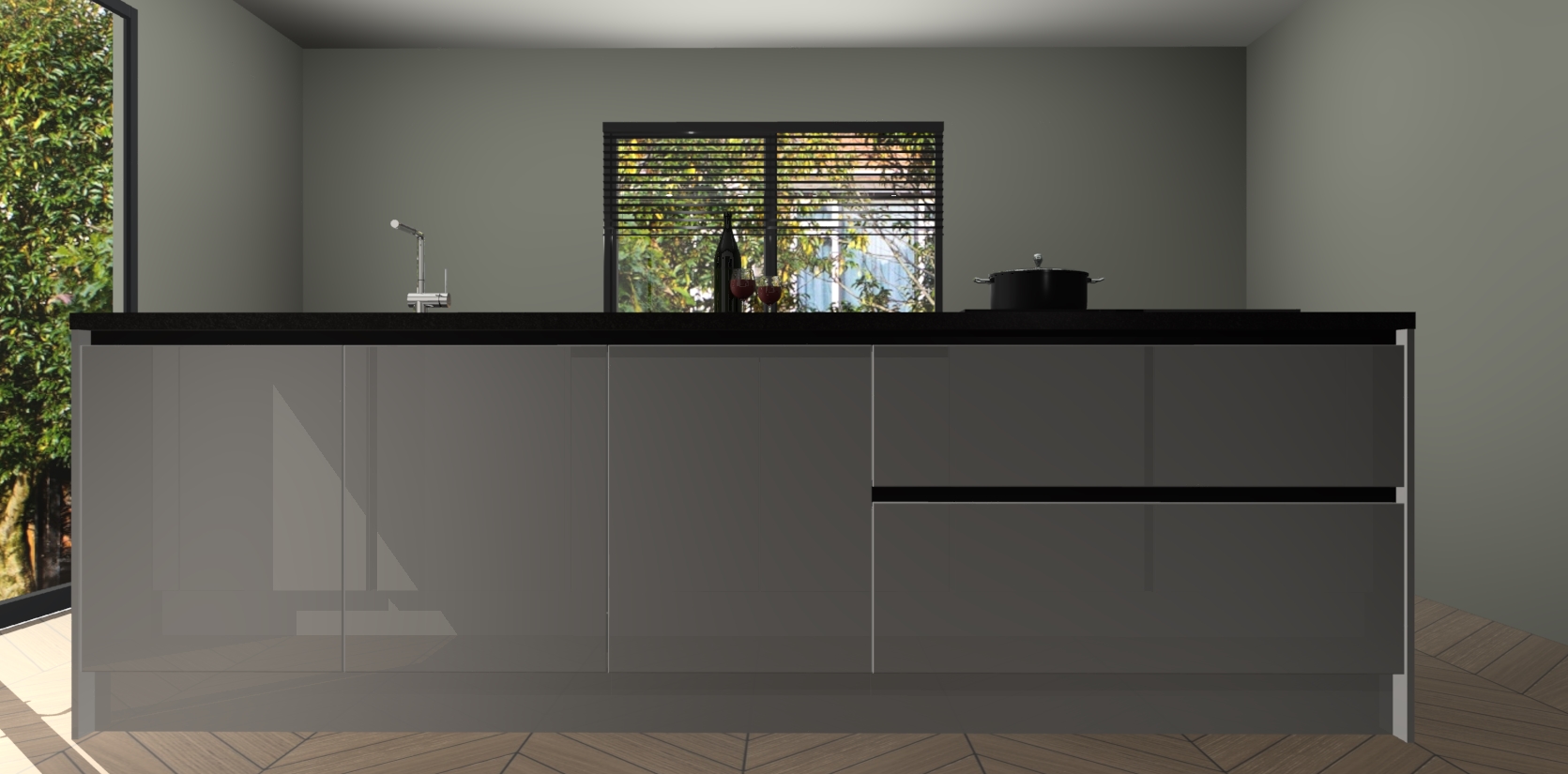 Sfeervol luxe met de zijdegrijze hoogglans greeploze keuken Lodz! Reken op een moderne look die met zijn schitterende zijdegrijze kleur en het prachtige keukeneiland echt zal schitteren in uw keuken. Met veel verschillende berging opties zult u alles kunnen opbergen wat u nodig heeft in deze hoopvolle ruimte, waaronder ook soft-close vergrendeling.