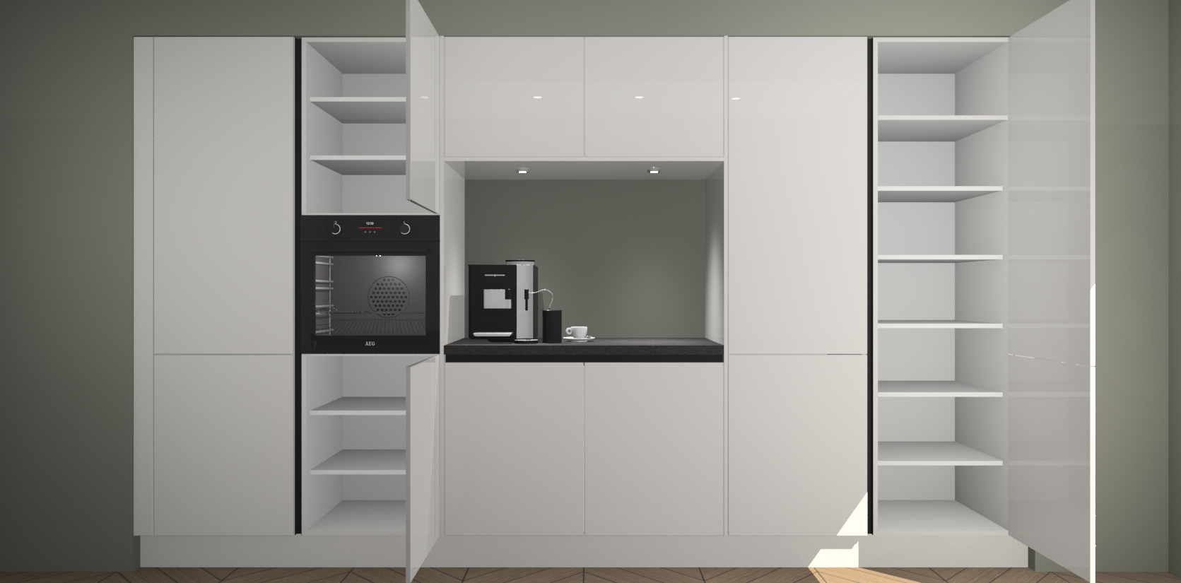 De zijdegrijze hoogglans greeploze keuken Lodz wordt geleverd met een set van 5 ingebouwde apparaten: Een oven, inductiekookplaat, afzuigkap, vaatwasser en koelkast. Deze kunnen gemakkelijk worden opgewaardeerd naar AEG. Met de gegarandeerde lage prijs en de snelle levering van 7 weken kan u er op rekenen dat de zijdegrijze hoogglans greeploze keuken Lodz zo snel mogelijk uw huis bereikt!