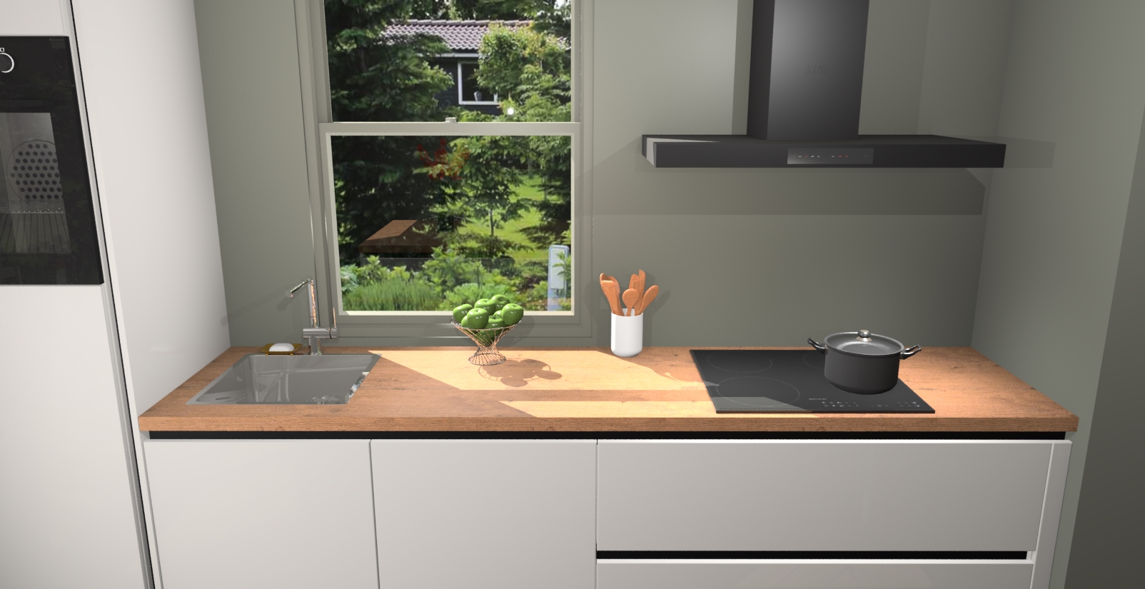 - Bij een hoekwerkblad zijn de hoeken in gevreesd en op maat gemaakt