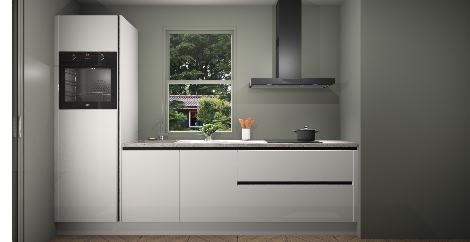 Een stijlvolle en praktische keuken als deze mag gezien worden. Dankzij de prachtige Zijdegrijze hoogglans afwerking wordt de keuken gemakkelijk het middelpunt van uw huis - hij ziet er geweldig uit onder allerlei lichtomstandigheden, van dag tot nacht!