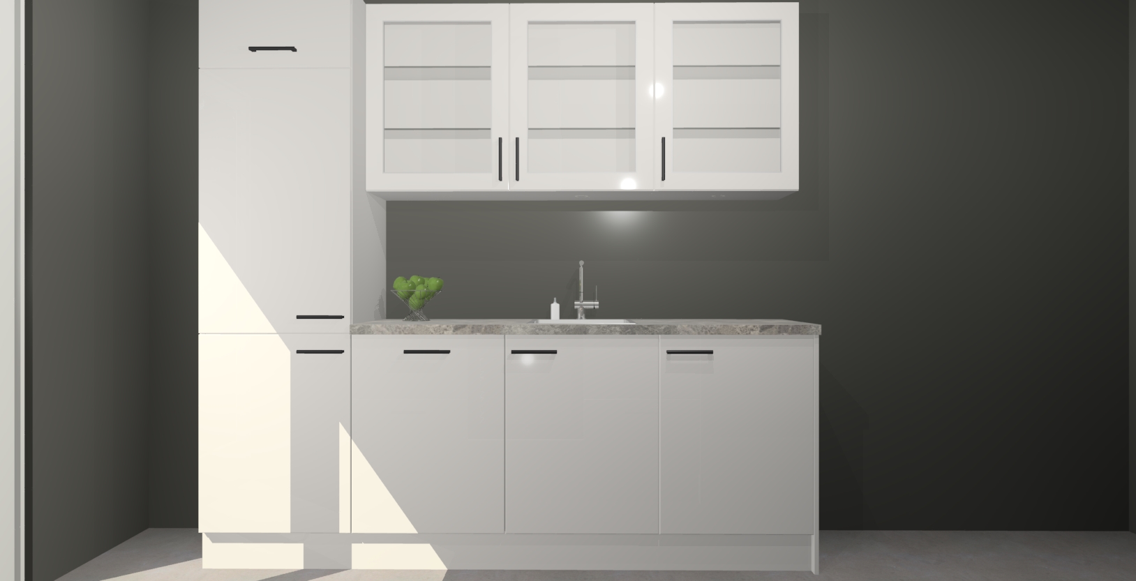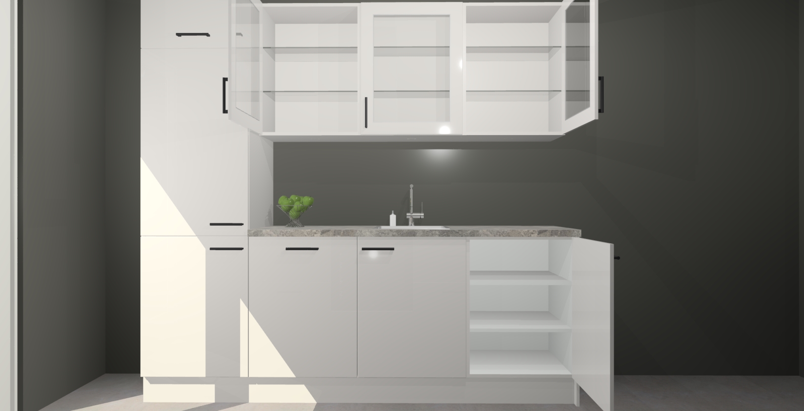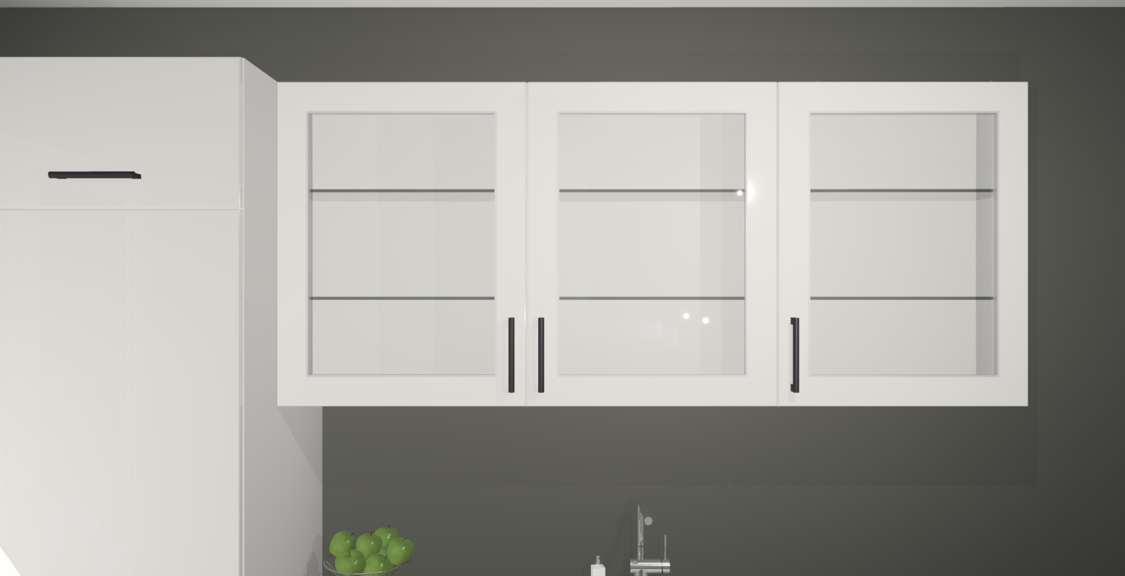 Deze glazen kastdeuren maken deel uit van ons softclose systeem - een systeem dat garandeert dat ze niet plotseling dichtslaan bij het openen of sluiten. Om dit pakket nog beter te maken, hebben we ook vijf inbouwapparaten meegeleverd - een oven, inductieplaat, afzuigkap, vaatwasser en koelkast - voor optimale prestaties in elke keuken. Hoewel ze nu voor een vaste lage prijs worden geleverd, kunnen al deze apparaten desgewenst na bestelling eenvoudig worden geüpgraded naar AEG.