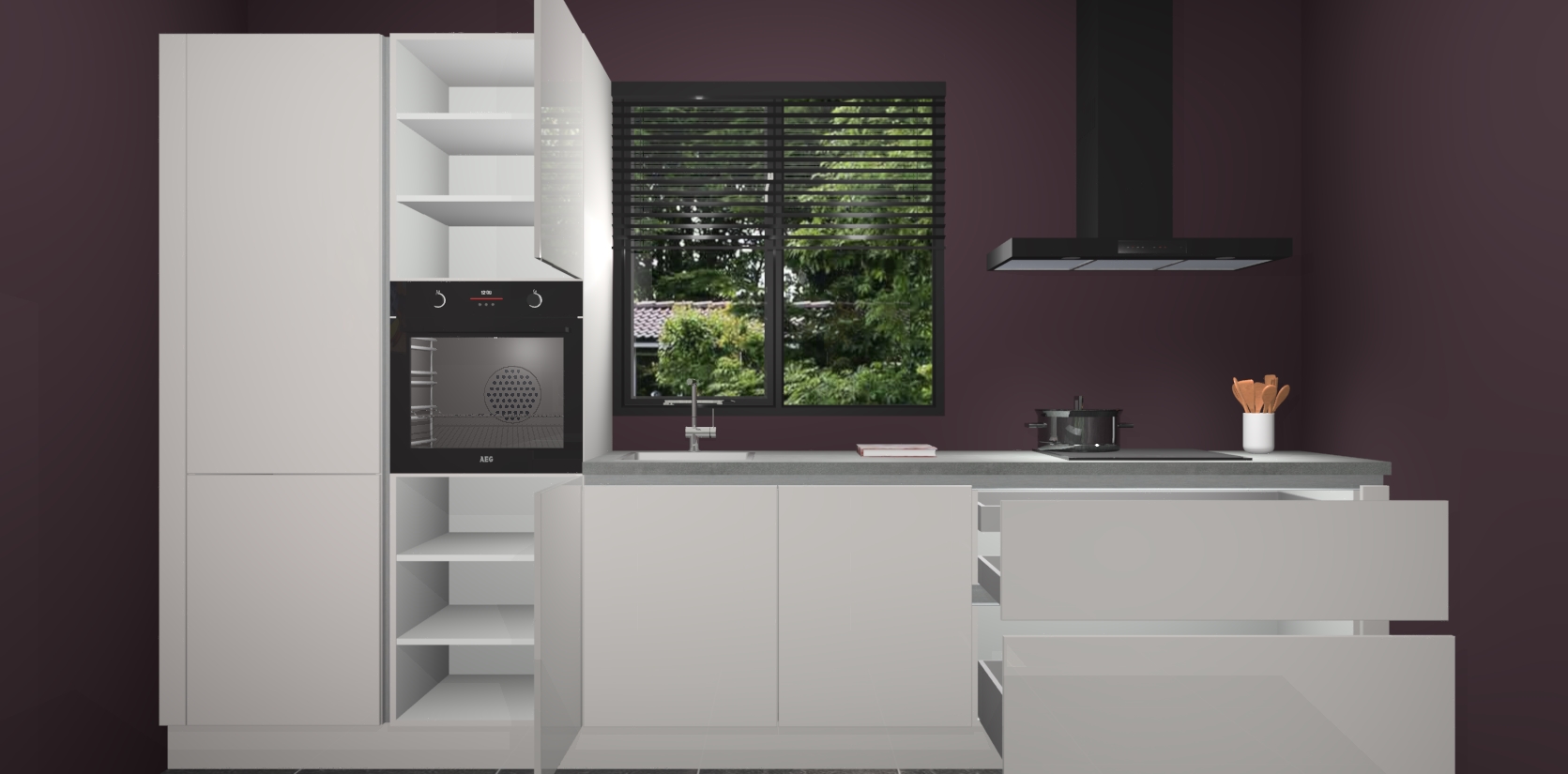 Maak kennis met de zijdegrijze hoogglans keuken Bonaire: de perfecte balans tussen tijdloos en modern. Met voldoende opbergruimte zal deze keuken de afgunst van uw vrienden en familie zijn, terwijl uw leven moeiteloos georganiseerd en rommelvrij blijft.